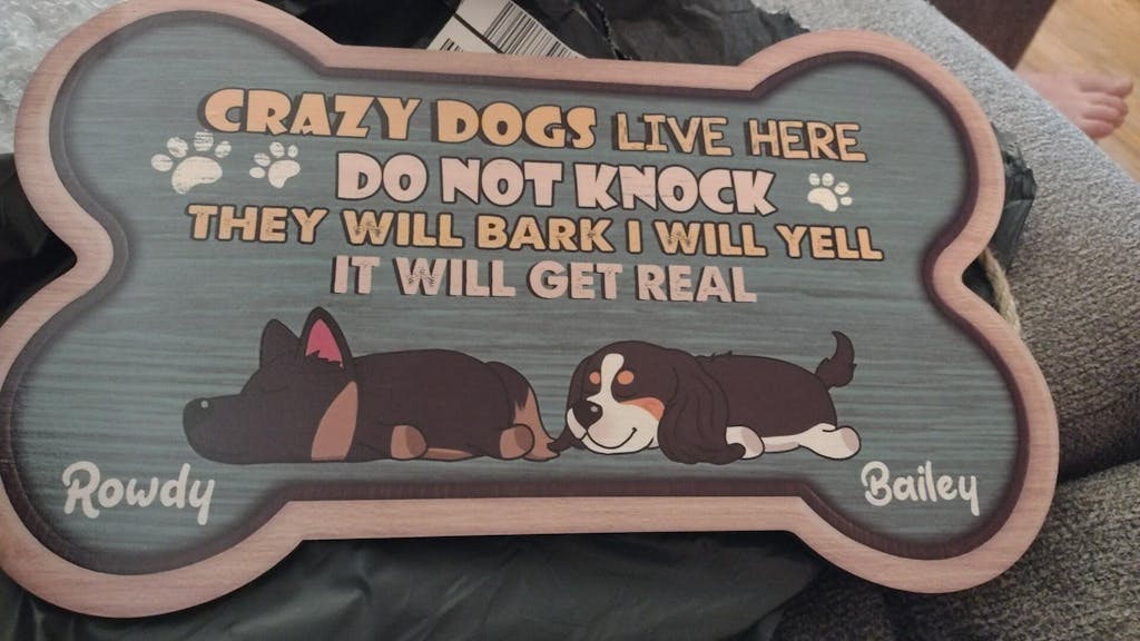 Crazy Dogs Live Here Do Not Knock They Will Bark I Will Yell It Will Get Real - Personalized Door Sign