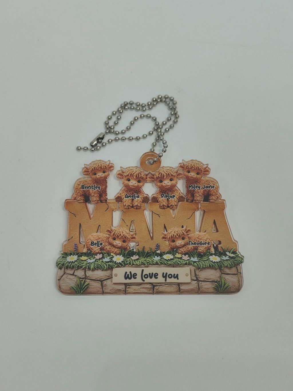 Cute Highland Cow Mama We Love You - Personalized Acrylic Car Hanger, Gift For Mom, Highland Cow Mama Gift