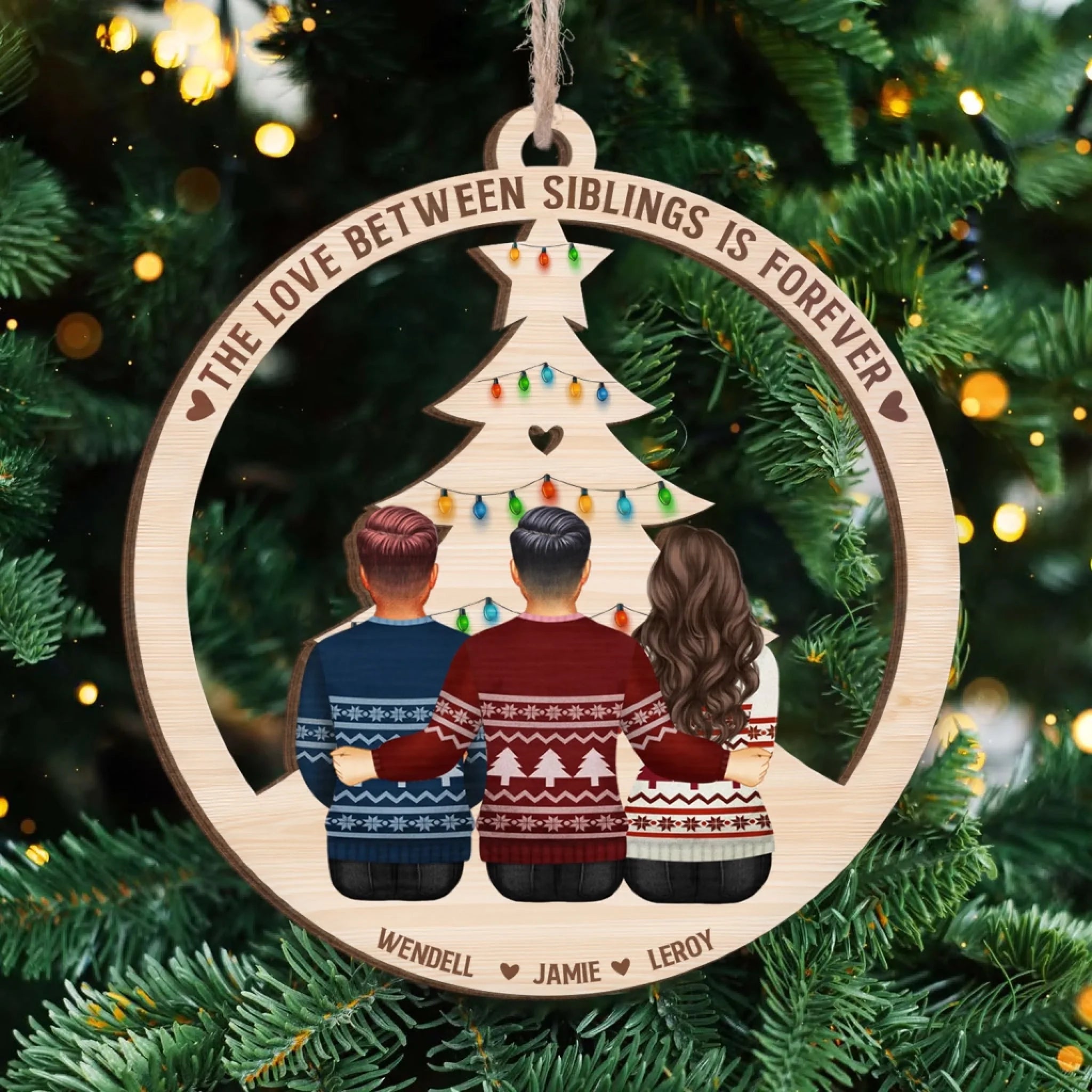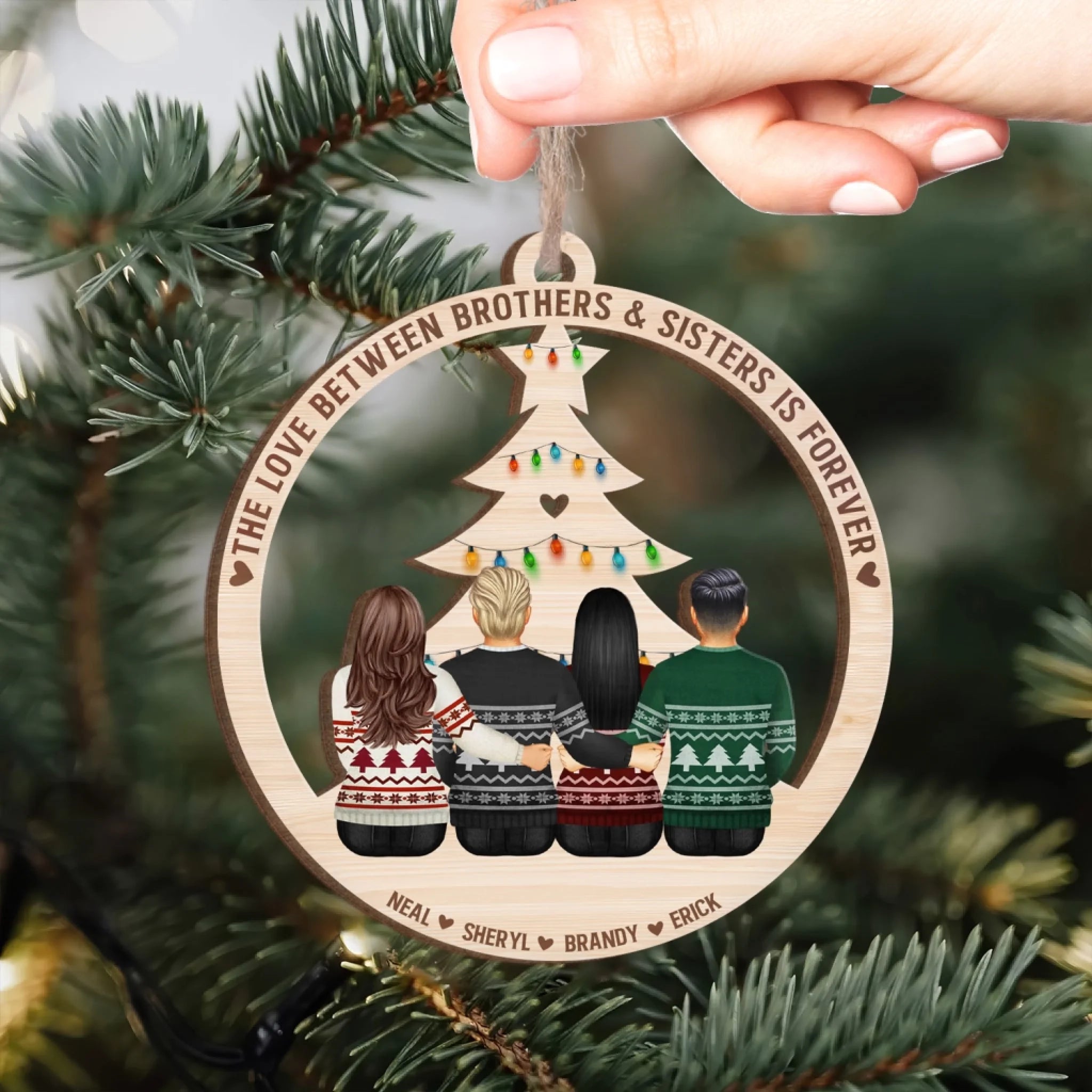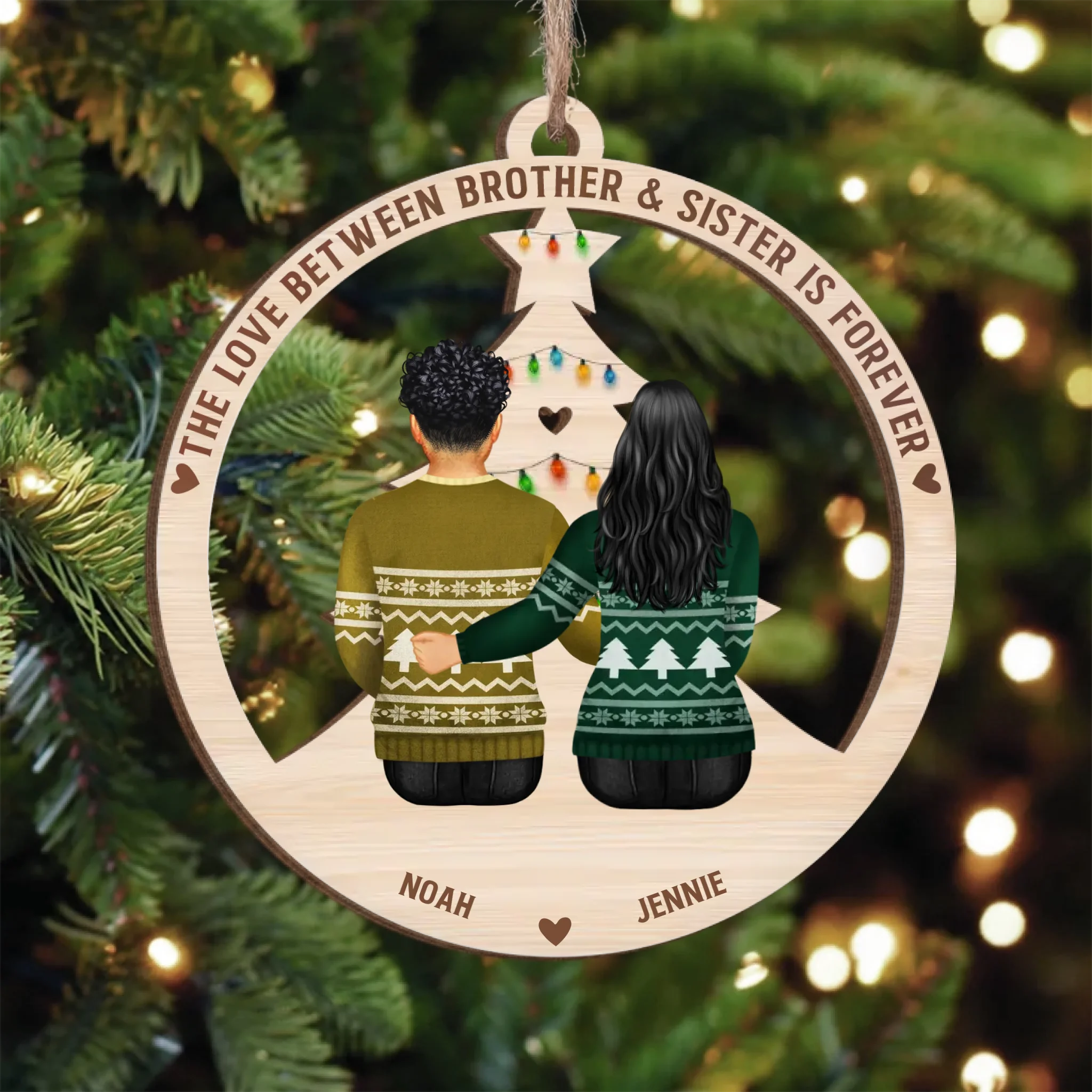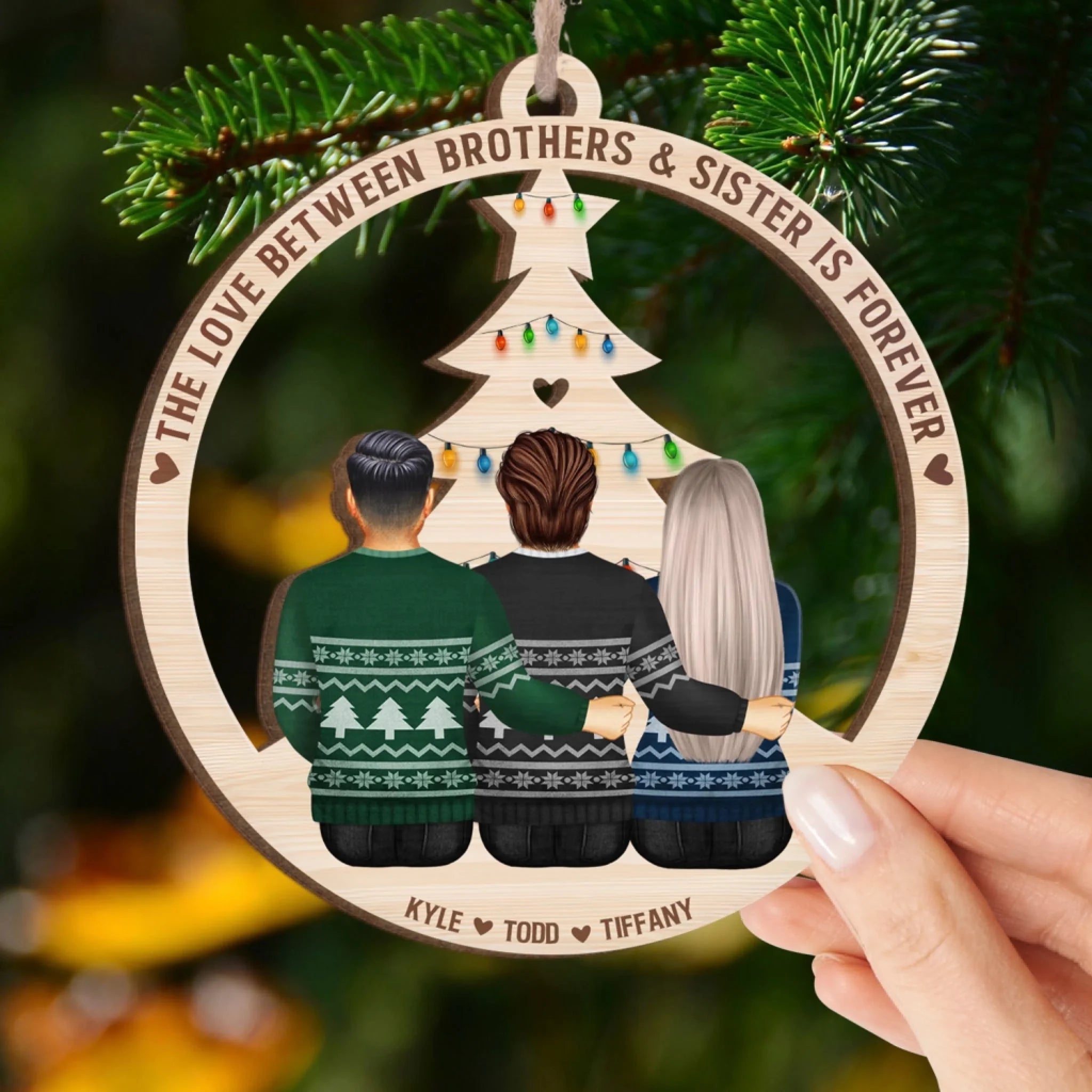 The Love Between Brothers & Sisters is Forever - Personalised Wooden Ornament, Christmas Gift For Family