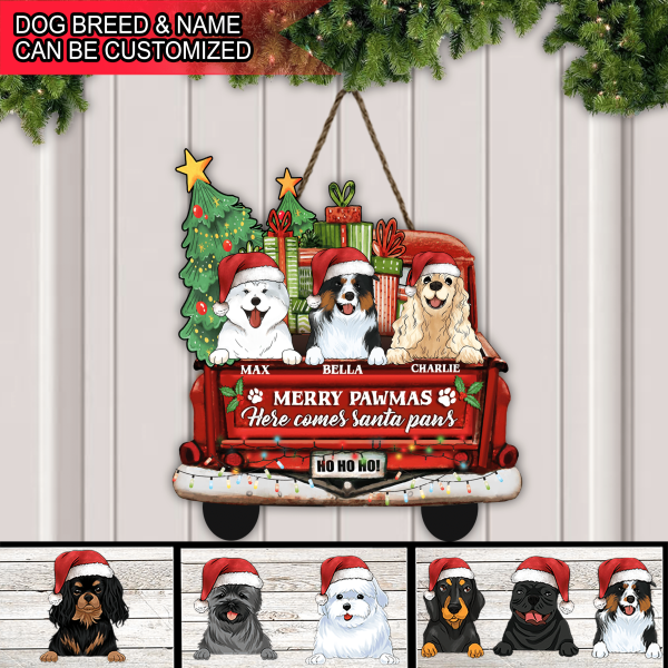 Personalized Merry Pawmas Wood Sign, Custom Shape Door Sign For Dog Lovers