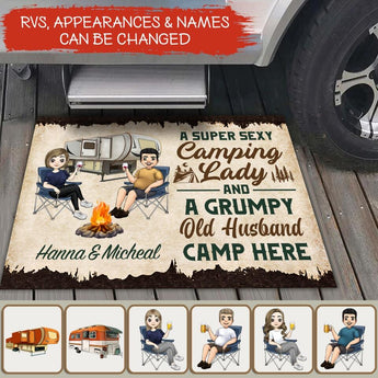A Super Sexy Camping Lady & A Grumpy Old Husband Camp Here -Personalized Doormat
