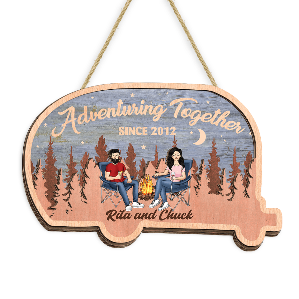 Adventuring Together Custom 2 Layer Sign | Anniversary Gifts Idea For Campers Couple