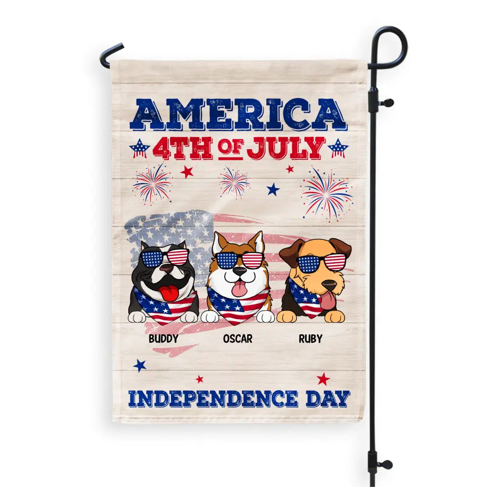 America 4th of July Independence Day - Personalized Garden Flag, Gift For Dog Lover
