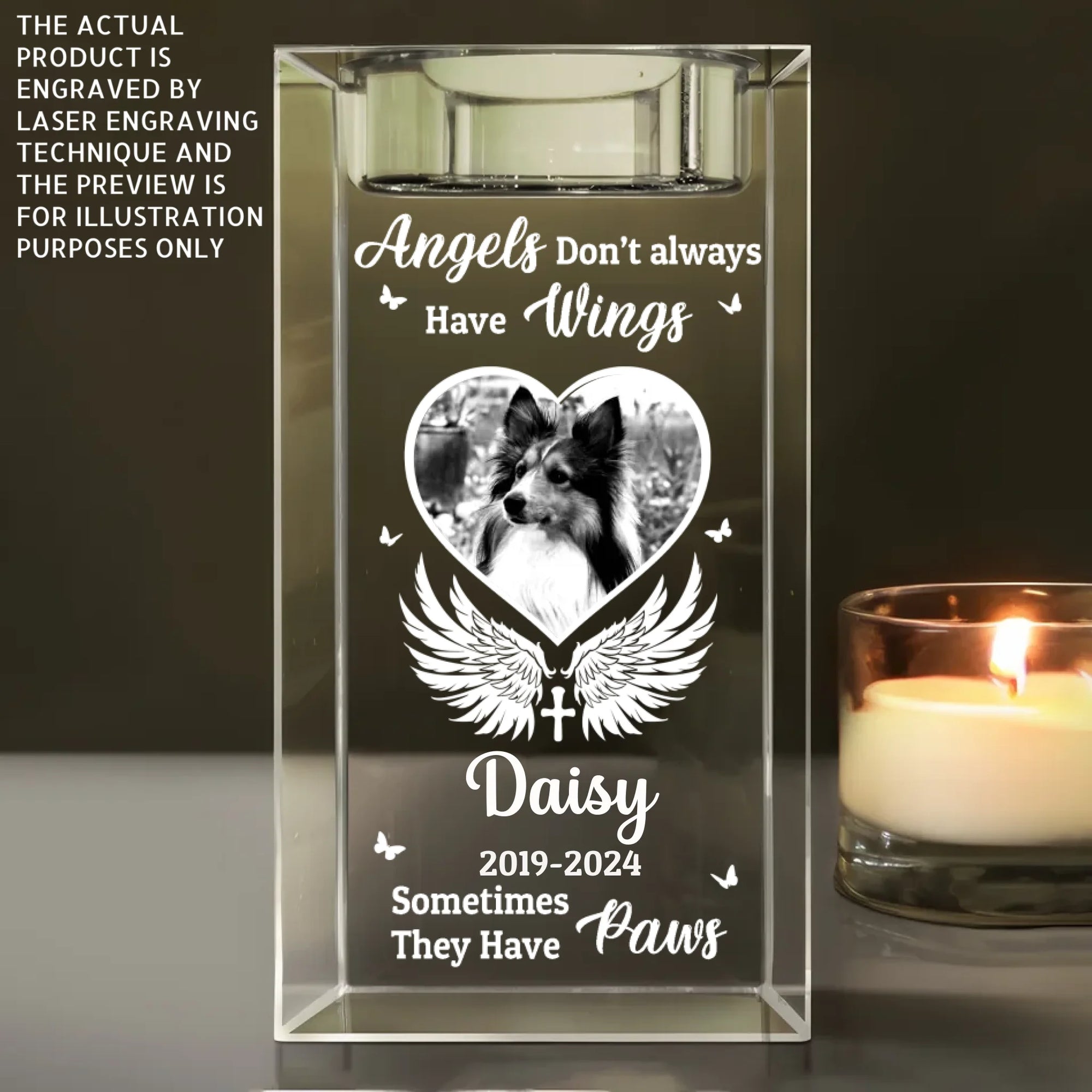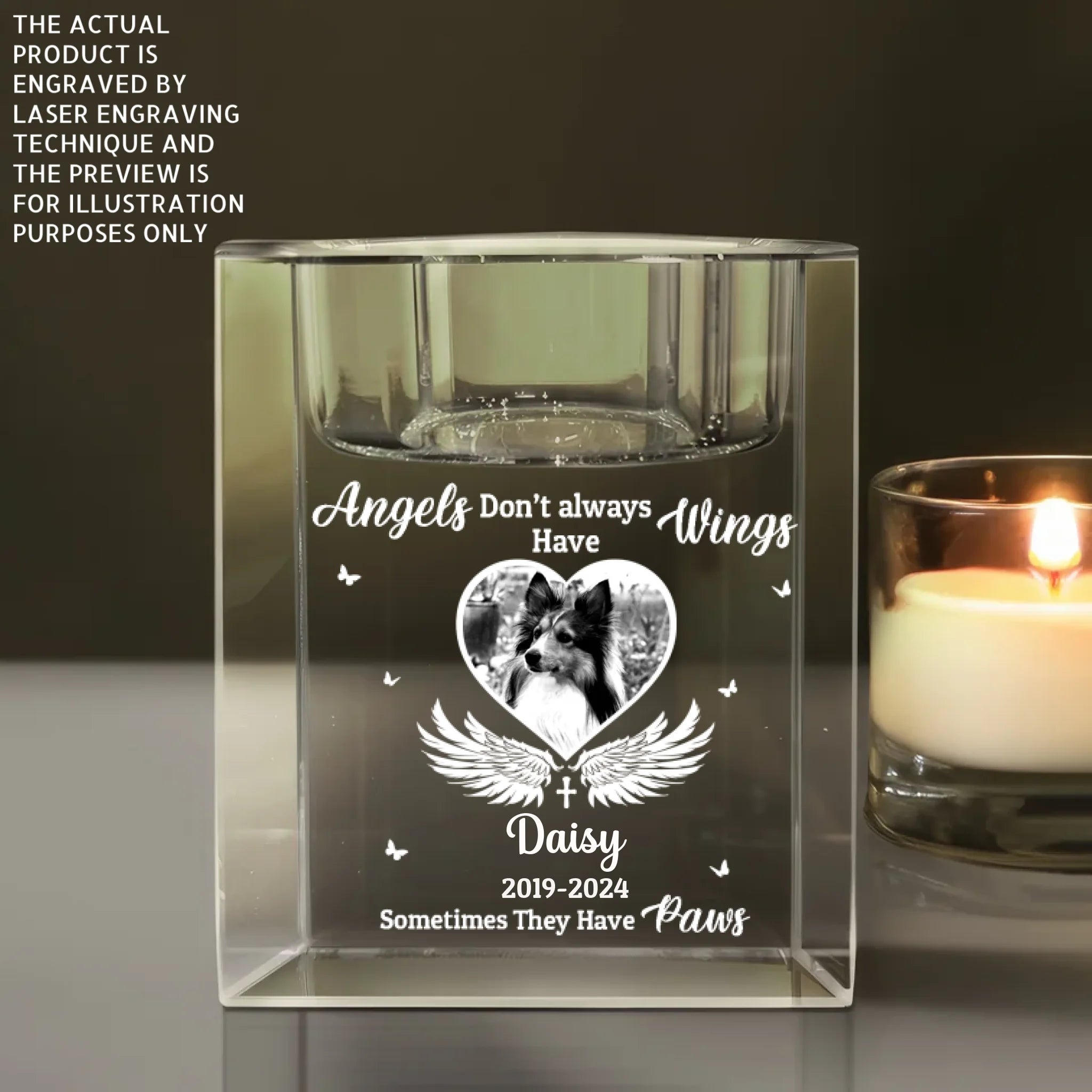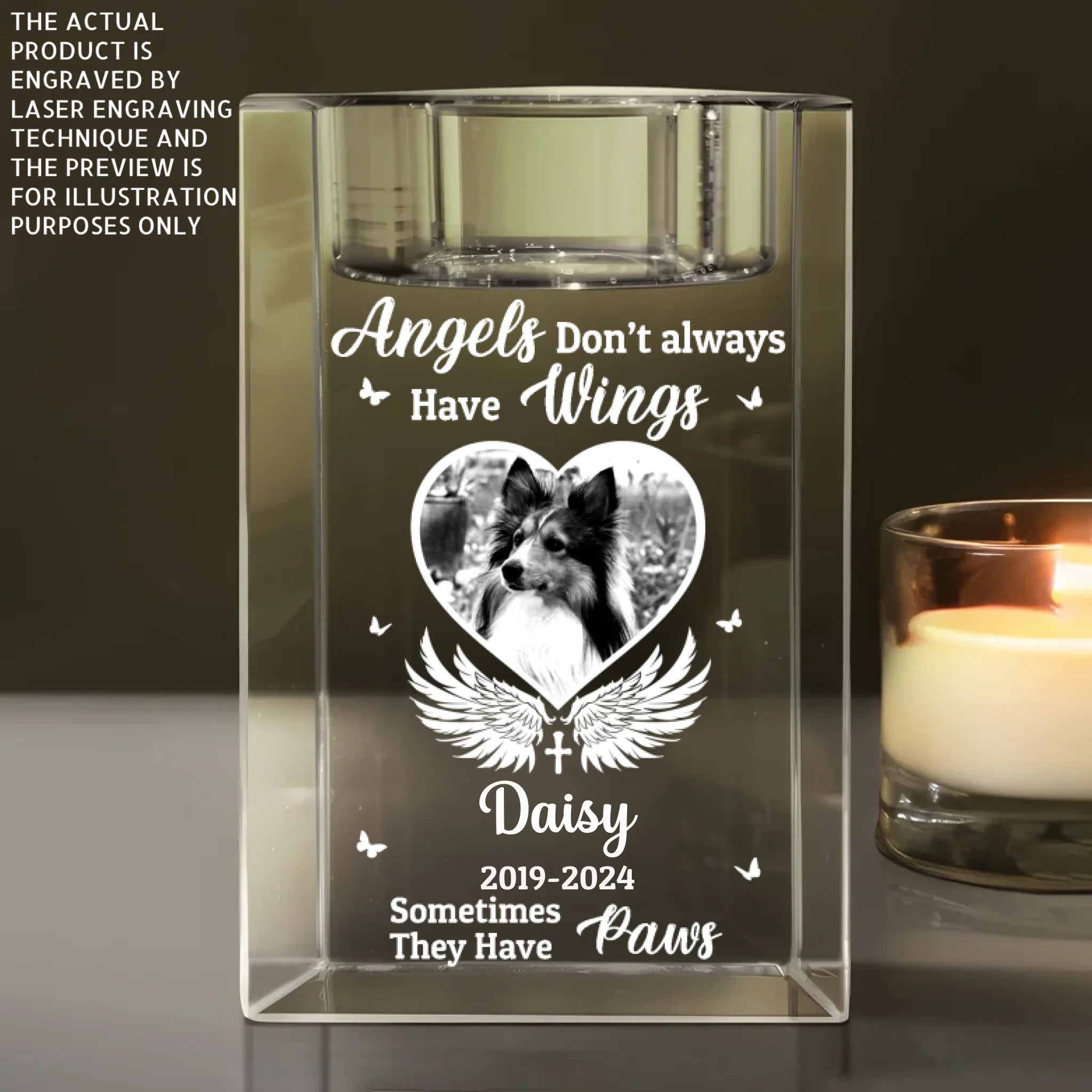 Angels Don’t Always Have Wings - Personalized Crystal Candle Holder, Pet Memorial Gift, Sympathy Gift