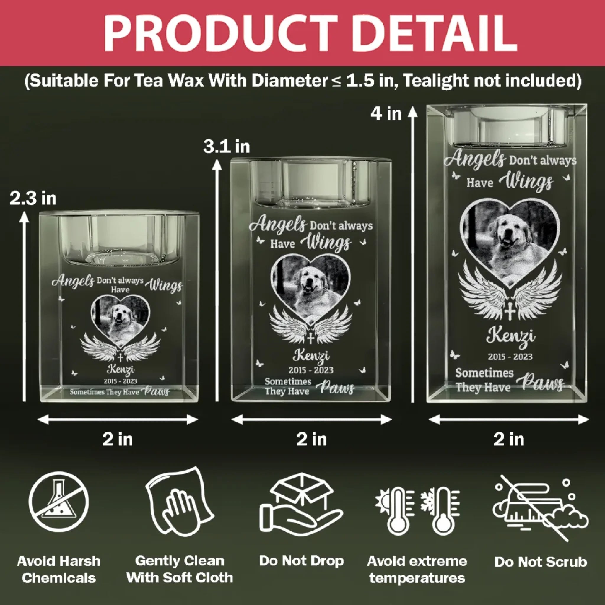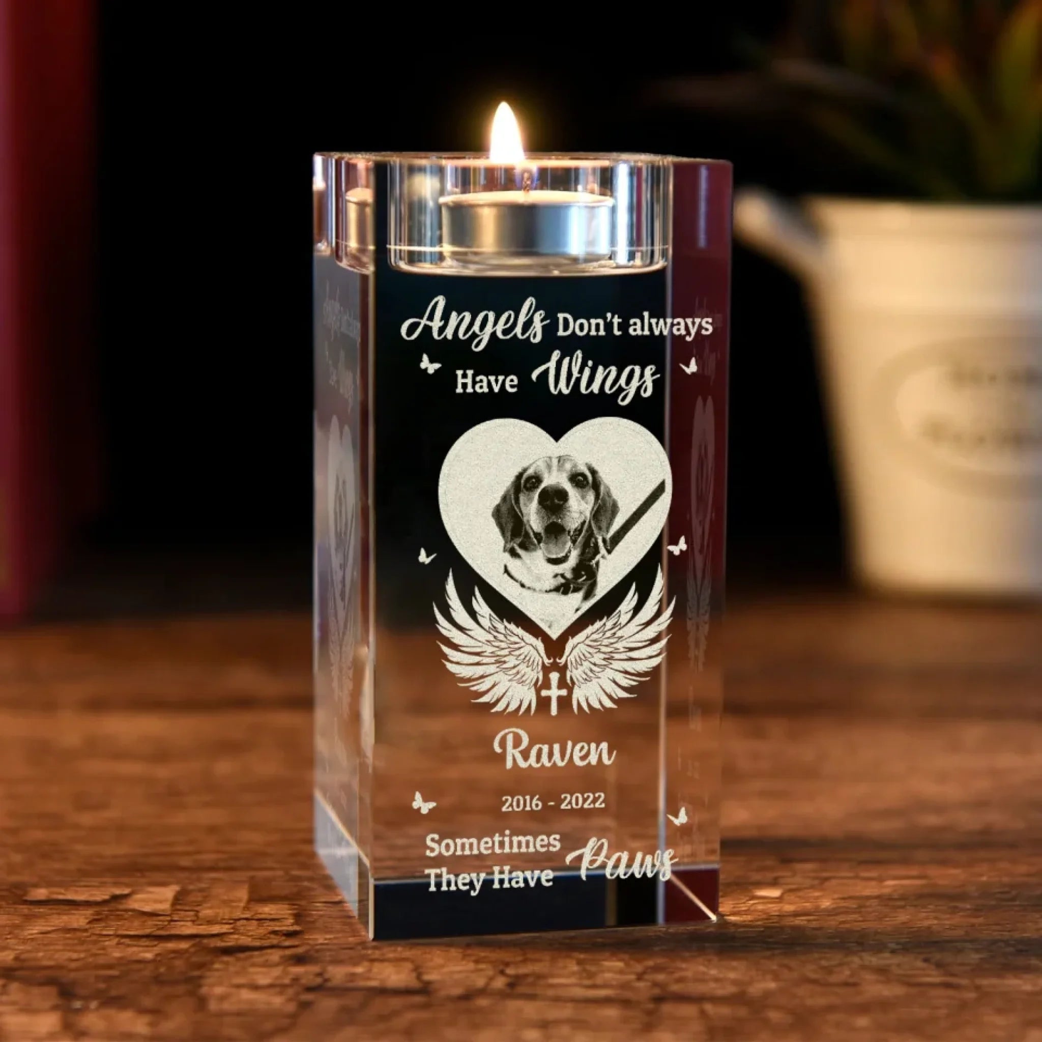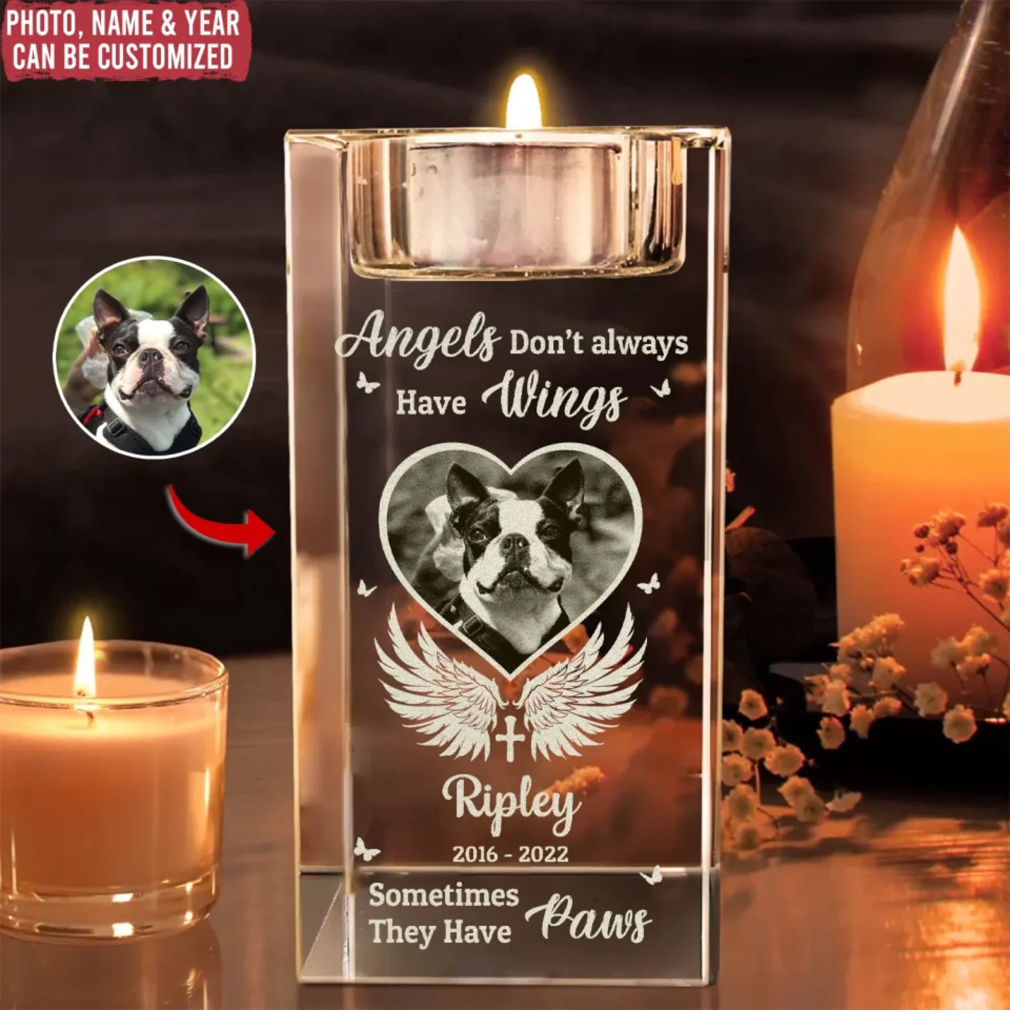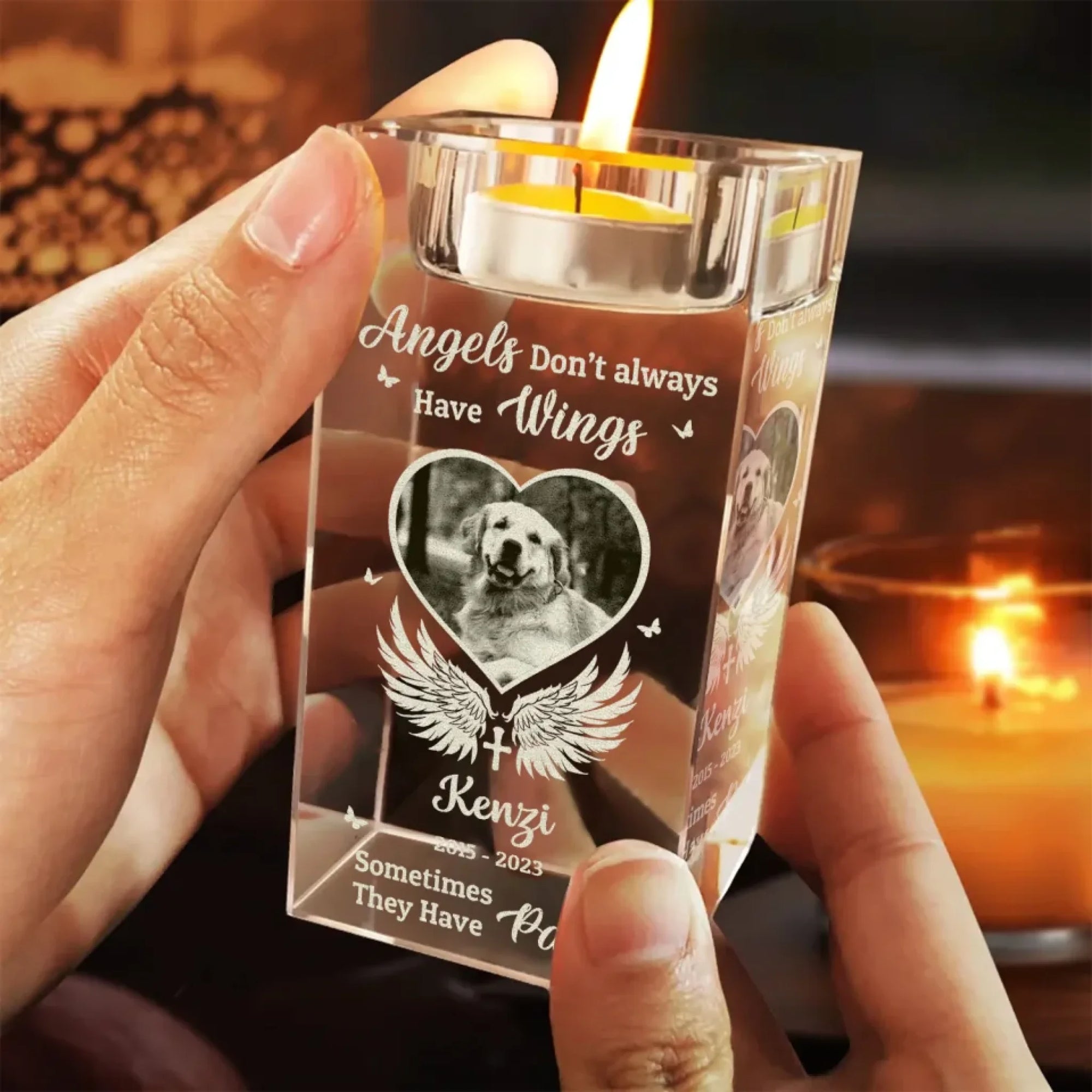 Angels Don’t Always Have Wings - Personalized Crystal Candle Holder, Pet Memorial Gift, Sympathy Gift
