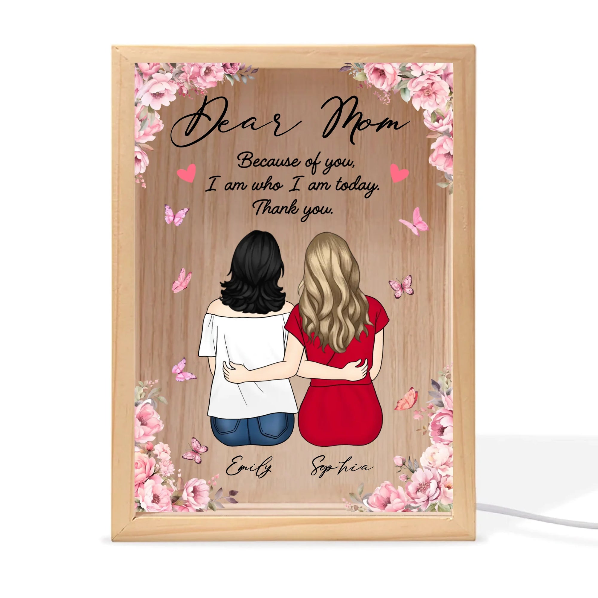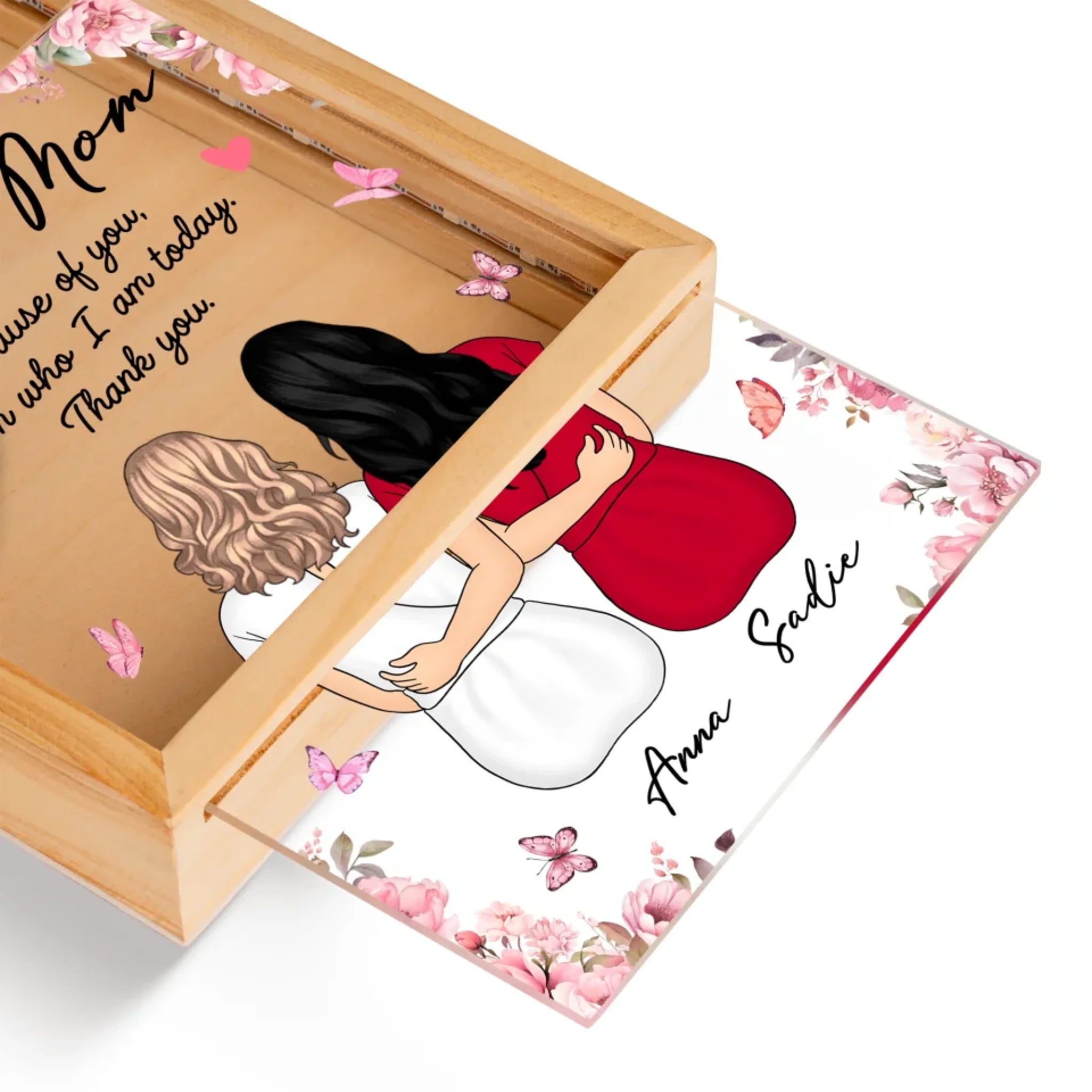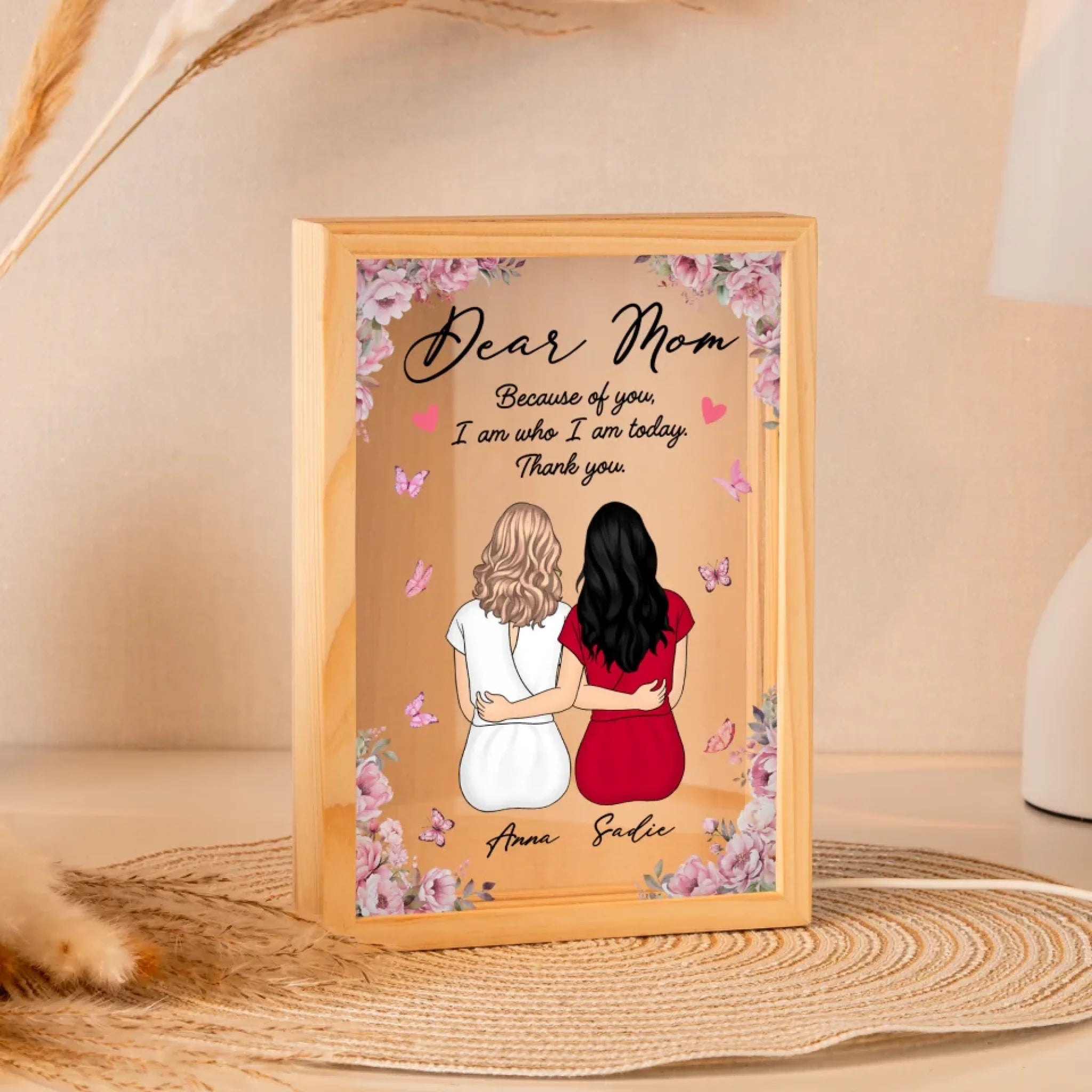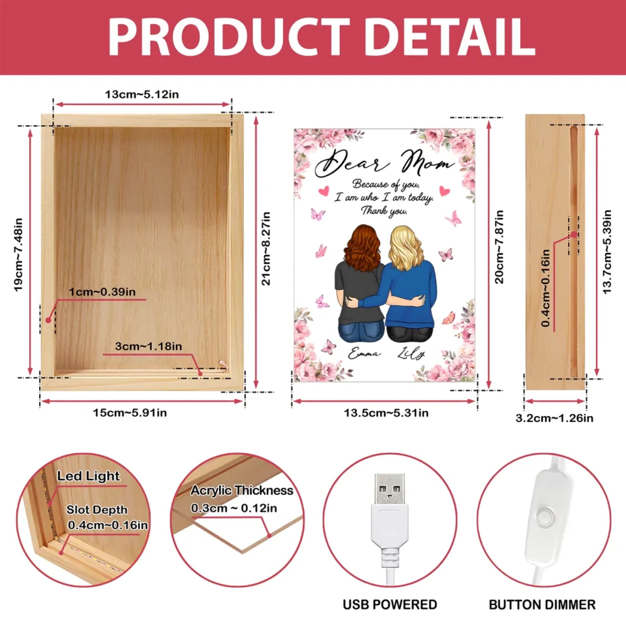 Because Of You, I Am Who I Am Today - Personalized Frame Light Box, Mom And Daughter Keepsake, Gift for Mom