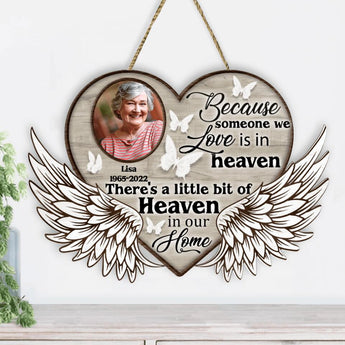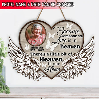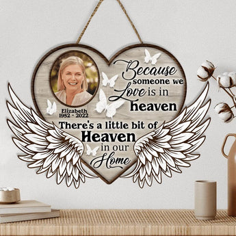 Because Someone We Love Is In Heaven - Personalized Memorial Wooden Door Sign