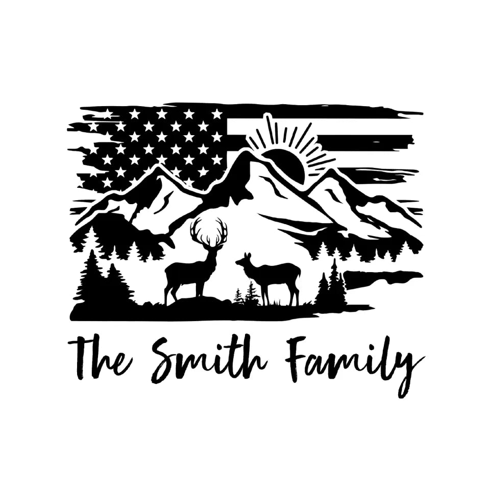 Camping Flag Deer And Mountain Custom Family Name - Personalized Decal, Gift For Camping Lovers - PCD113