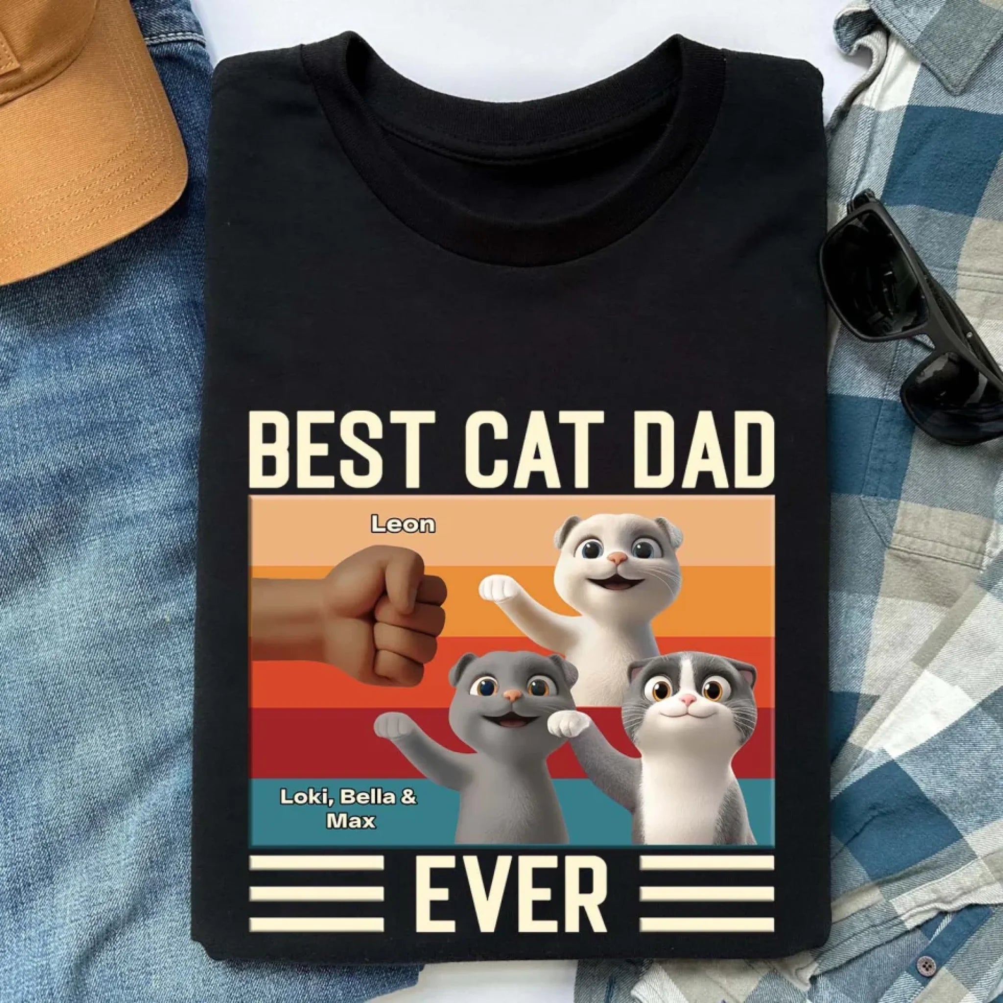 Cat Dad Gift, Best Cat Dad Ever - Personalized T-Shirt, Gift For Cat Lover