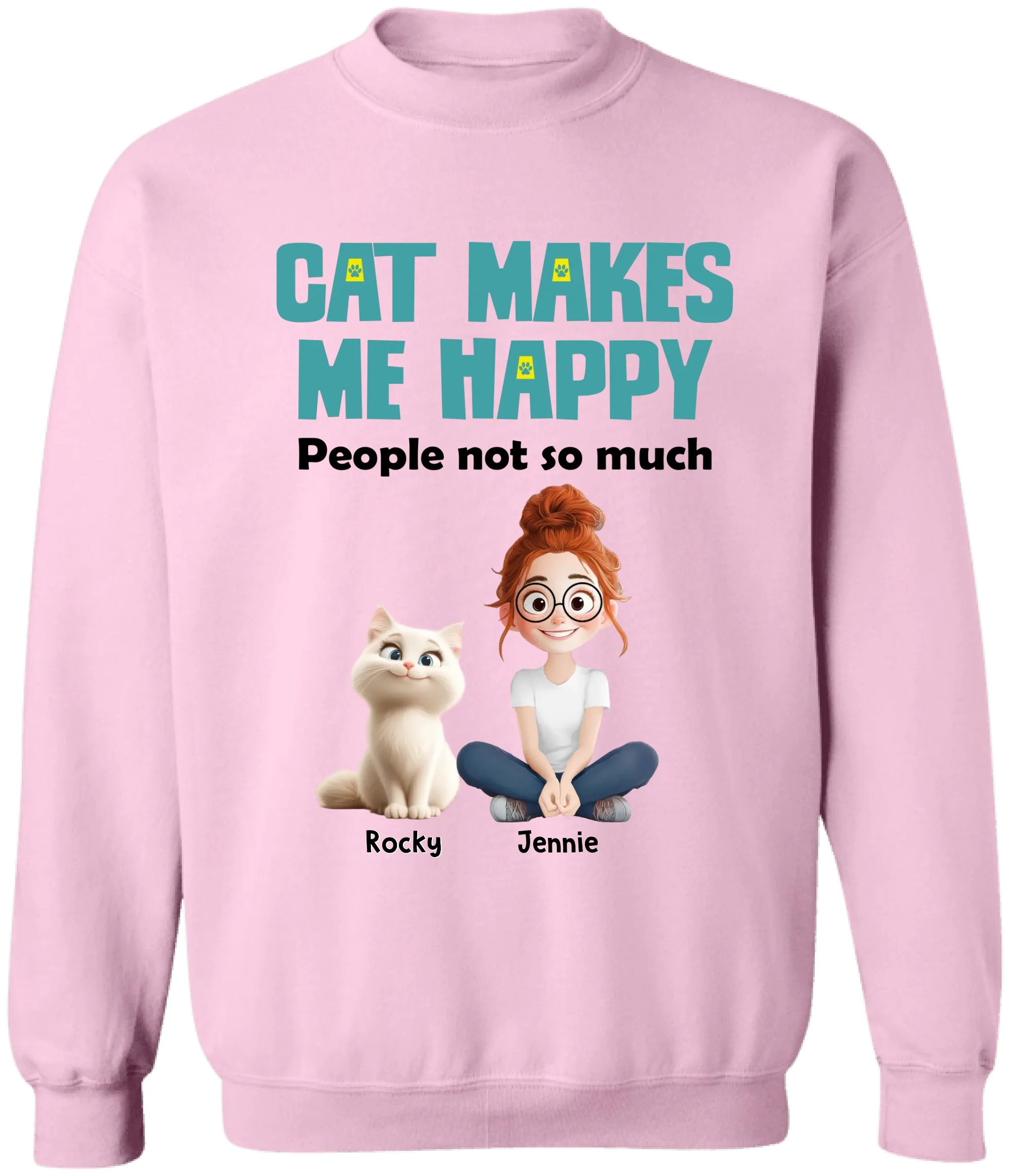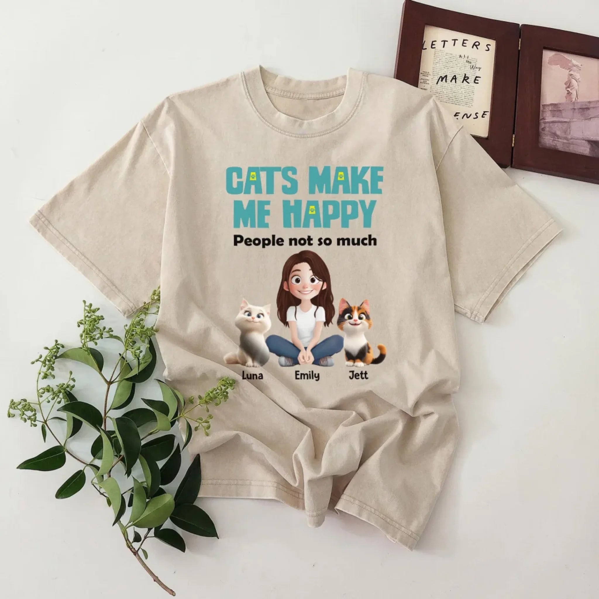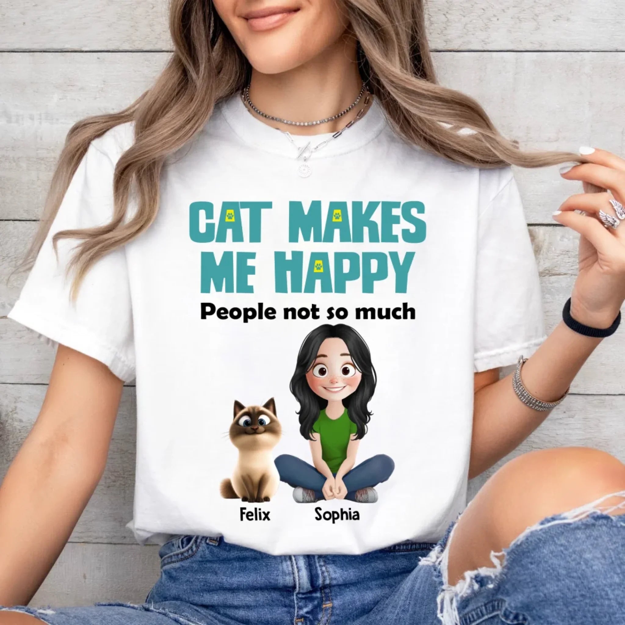Cats Make Me Happy People Not So Much - Personalized T-Shirt, Funny Gift for Cat Lover, Cat Mom, Cat Dad Shirt