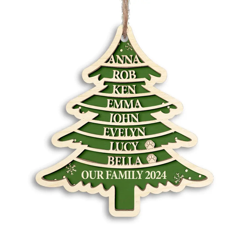 Christmas Tree Family Names - Personalized 2 Layer Wooden Ornament, Family Christmas, Family Ornament - ORN192TL