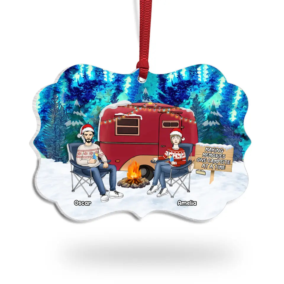 Couple Camping Christmas - Personalized Suncatcher Ornament, Gift For Camping Lover