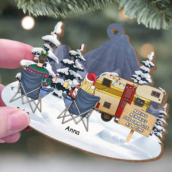 Couple Christmas With RVs - Personalized Wooden Ornament, Ornament Gift For Camping - ORN302