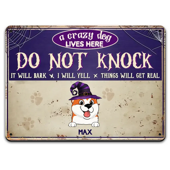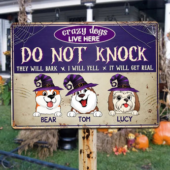 Crazy Dogs Live Here Do Not Knock - Personalized Metal Sign, Gift For Halloween