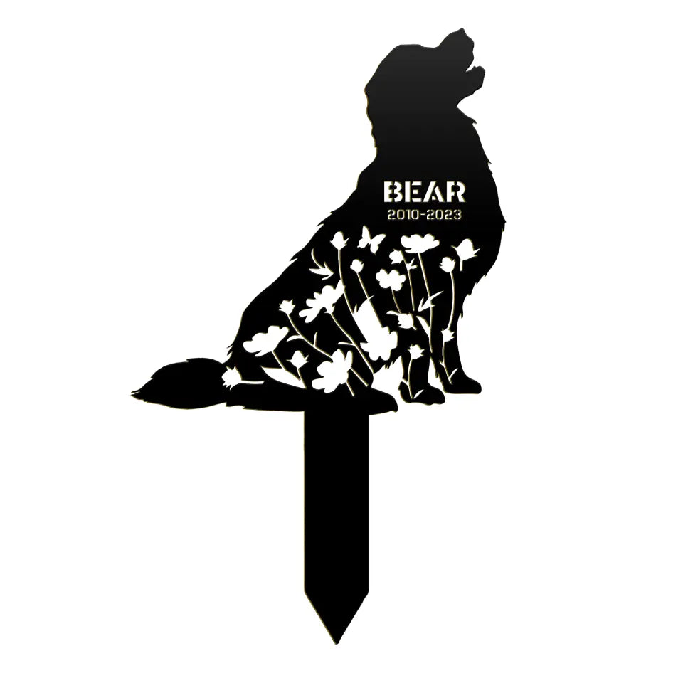 Custom Floral Dog Memorial - Personalized Metal Stake, Dog Grave Marker, Pet Loss Gift, Garden Decor - MPS01