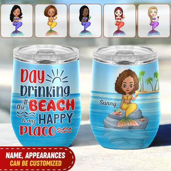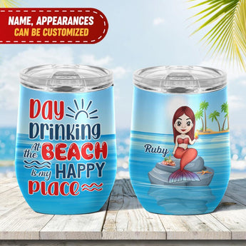 Day Drinking At The Beach Is My Happy Place - Personalized Wine Tumbler, Gift For Beach Lovers
