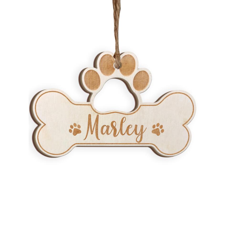 Dog Christmas Ornament Bone Paw Shape with Laser engraved Custom Name, Dog Custom Christmas Decoration Gift for Pet Lovers