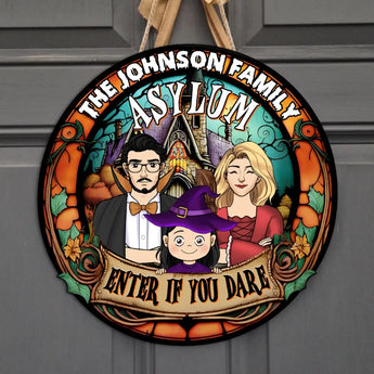 Family Asylum - Personalized Wood Sign, Halloween Gift