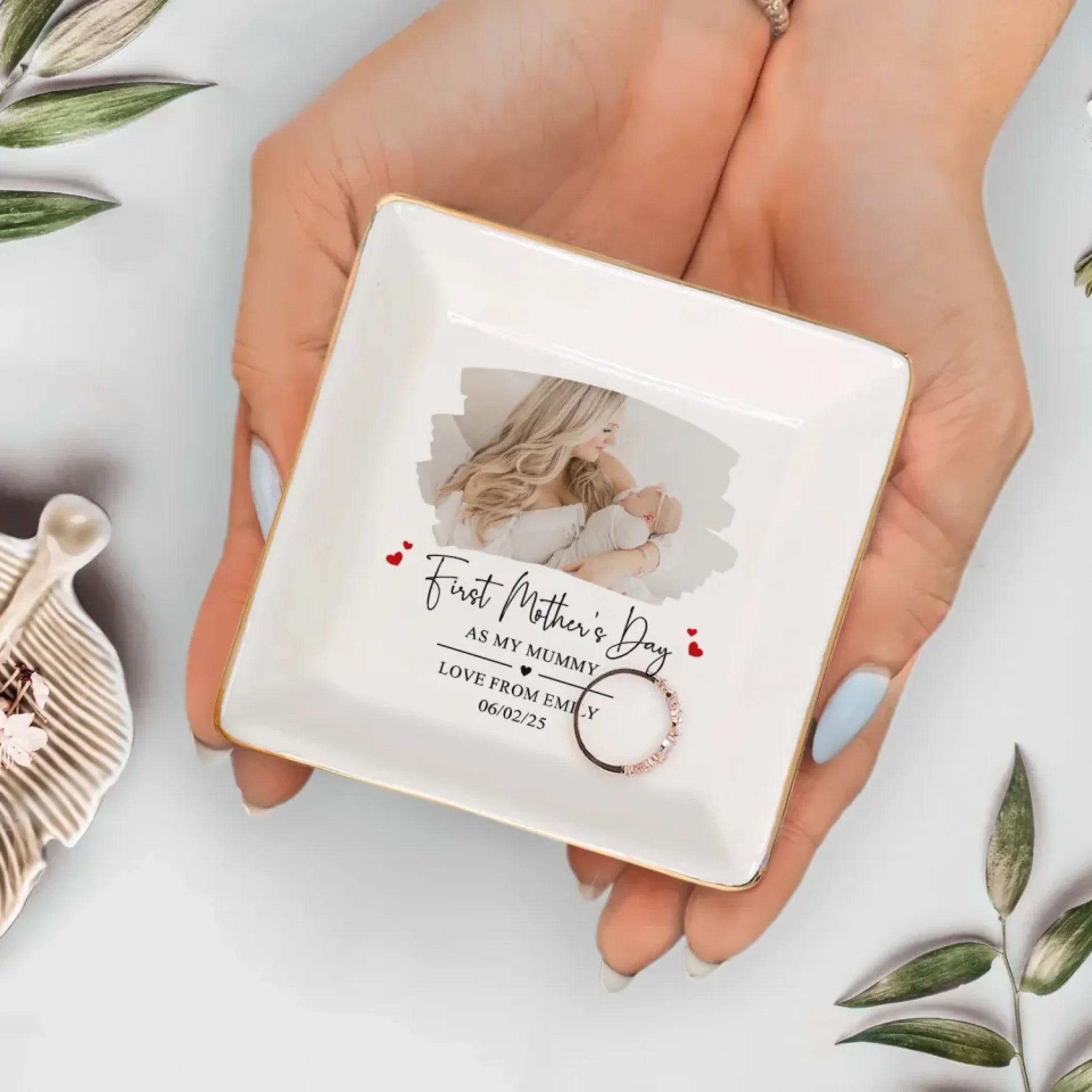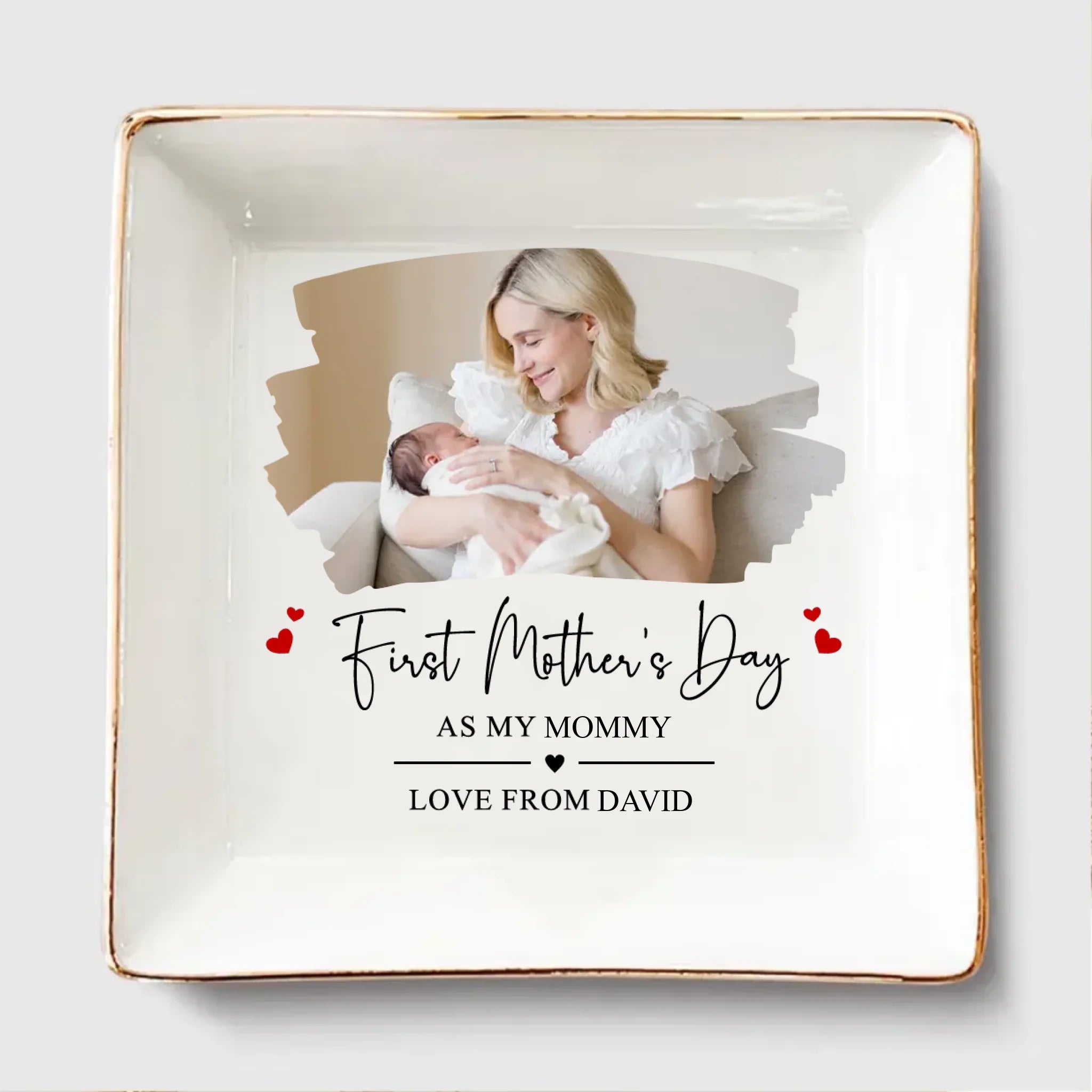 First Mother's Day - Personalized Jewelry Dish, Gift For Mom, Mom And Kid Custom Photo, First Mom Dish