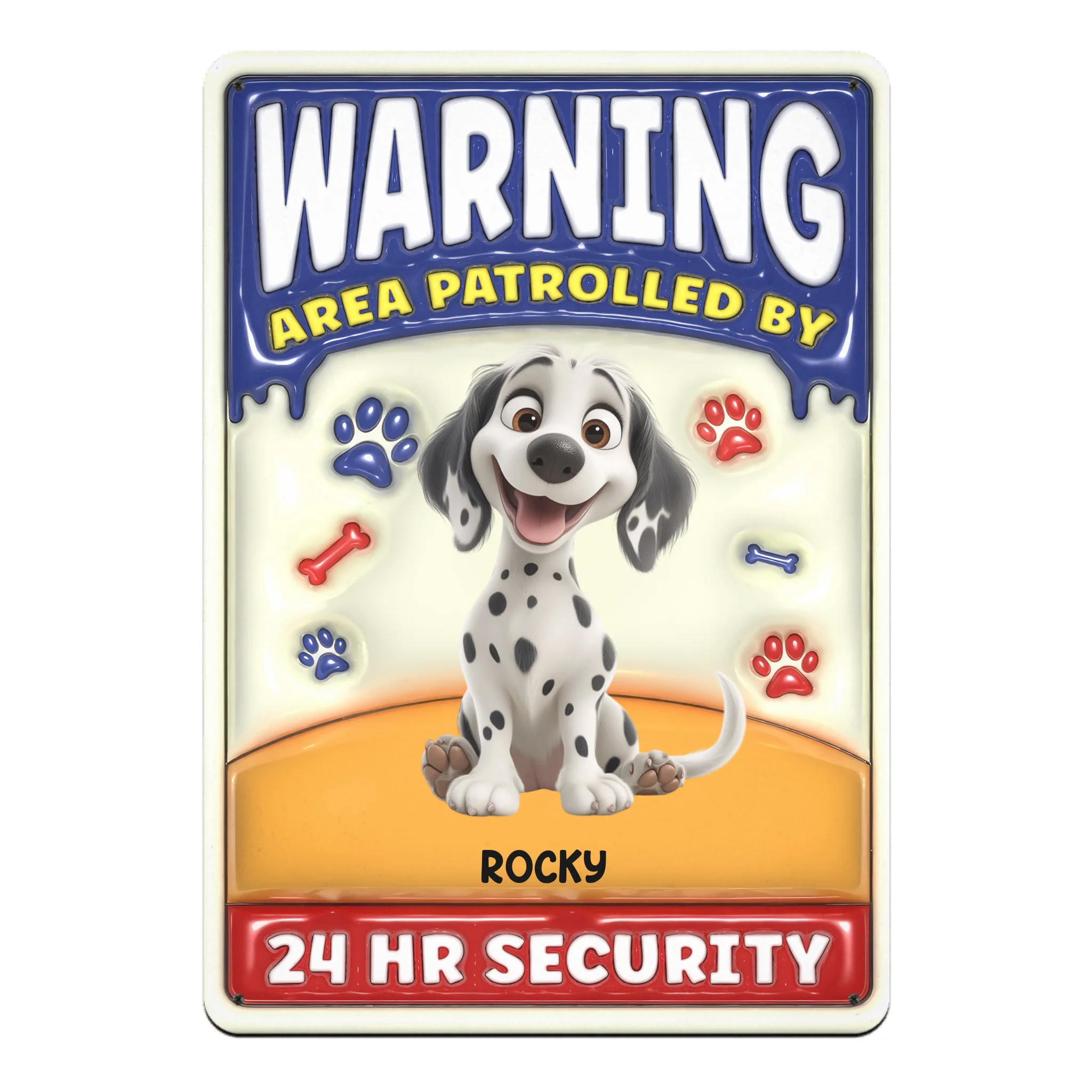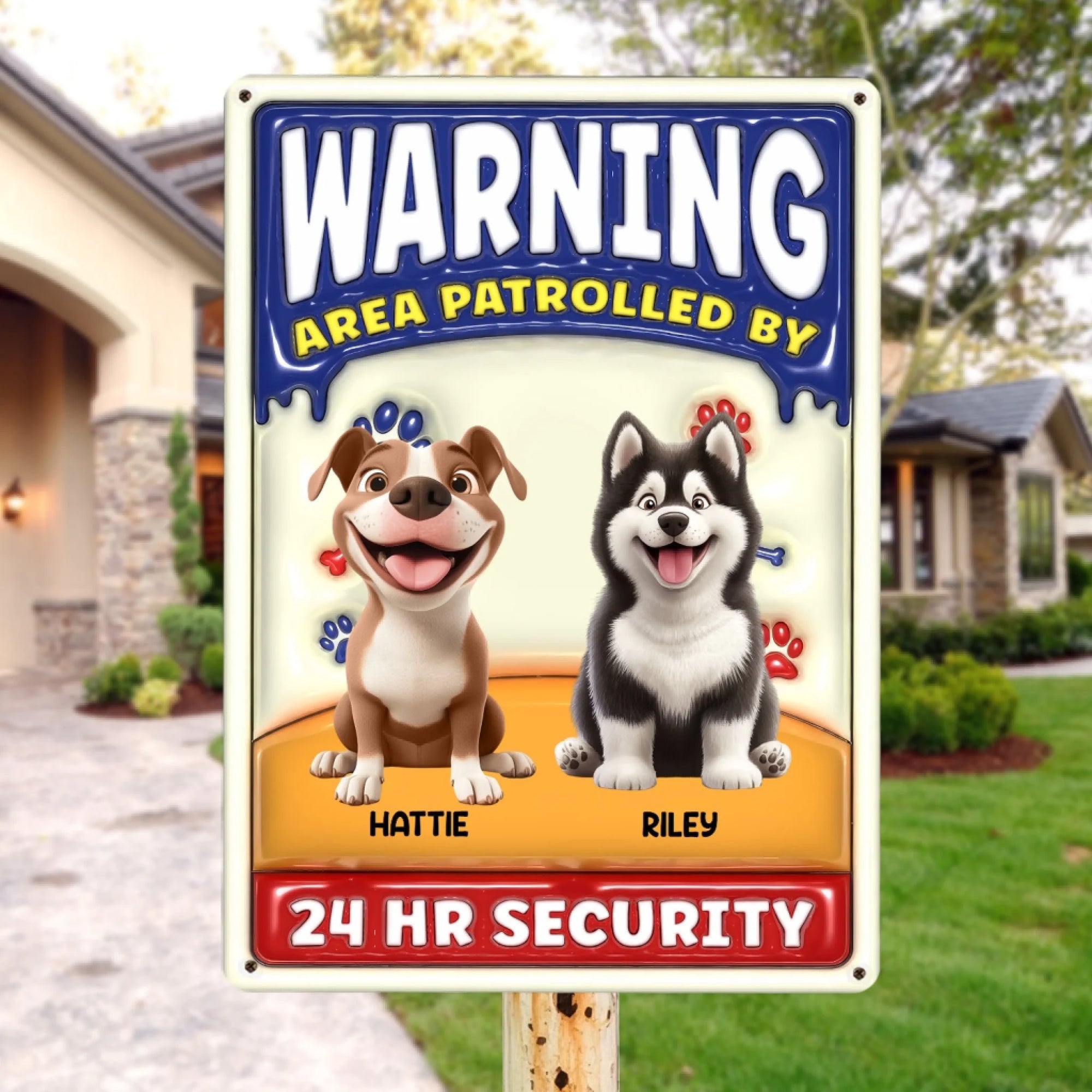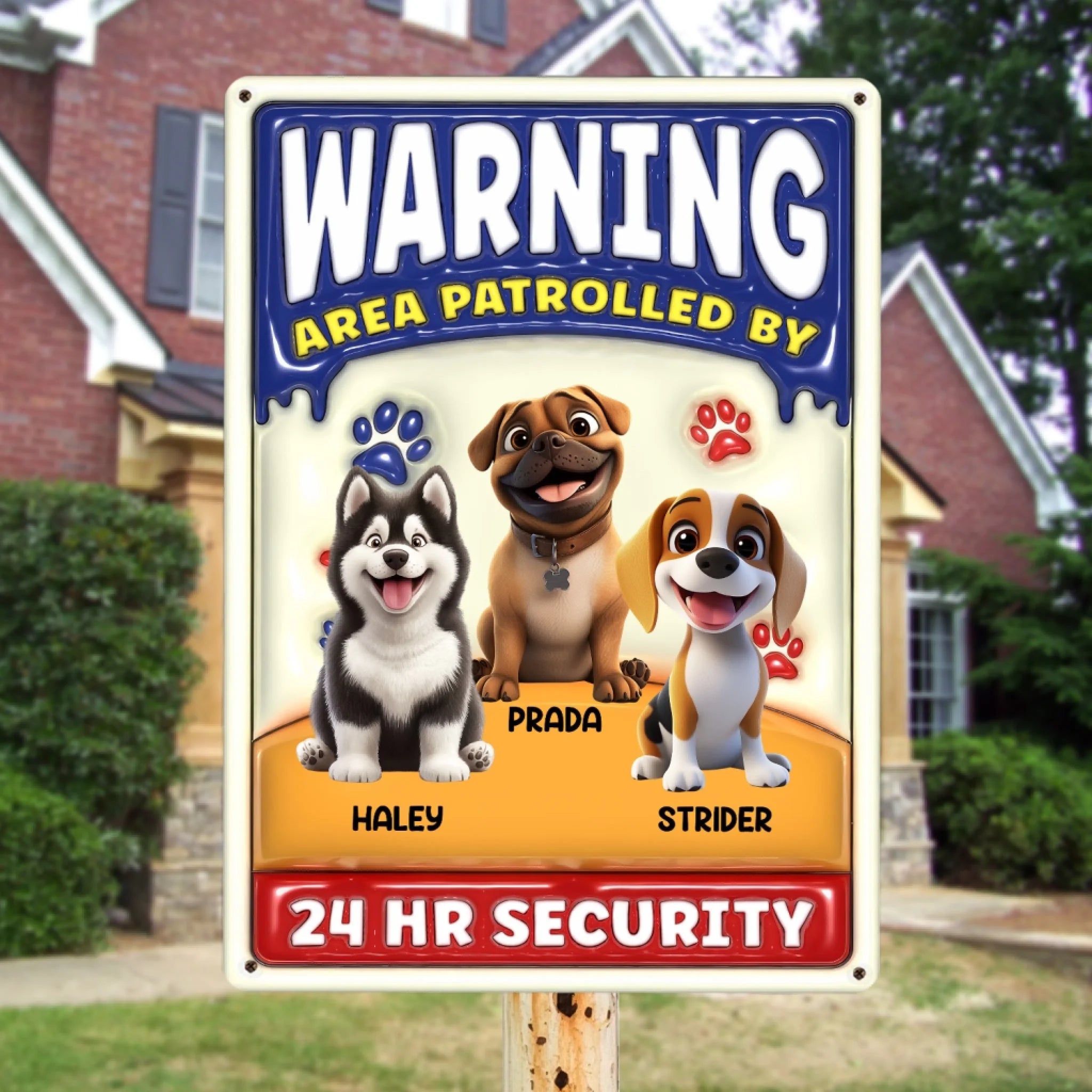 Funny Gift, Warning Area Patrolled By 24 Hr Security - Personalized Metal Sign, Gift For Dog Lover