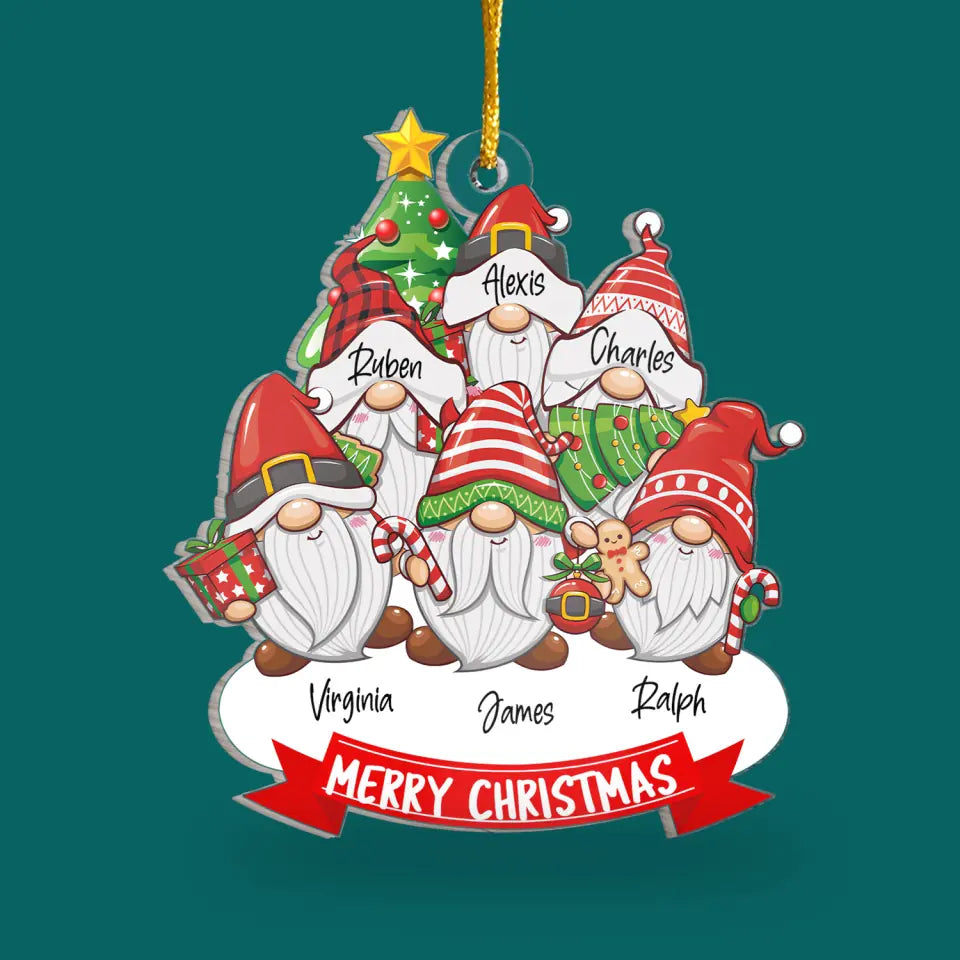 Gnome Family Christmas Tree - Personalized Acrylic Ornament, Family Christmas Ornament - ORN163TL