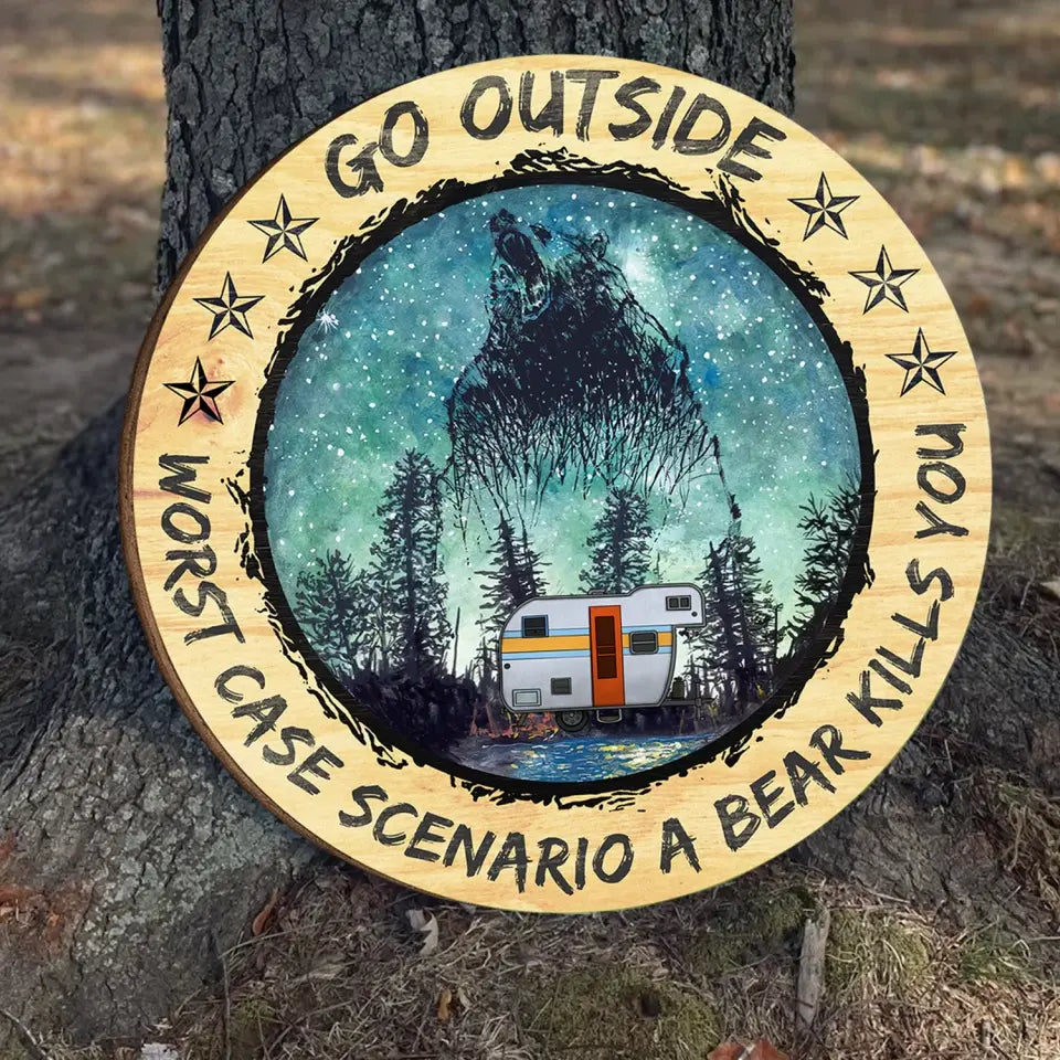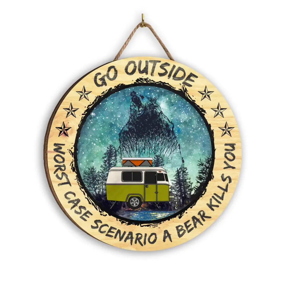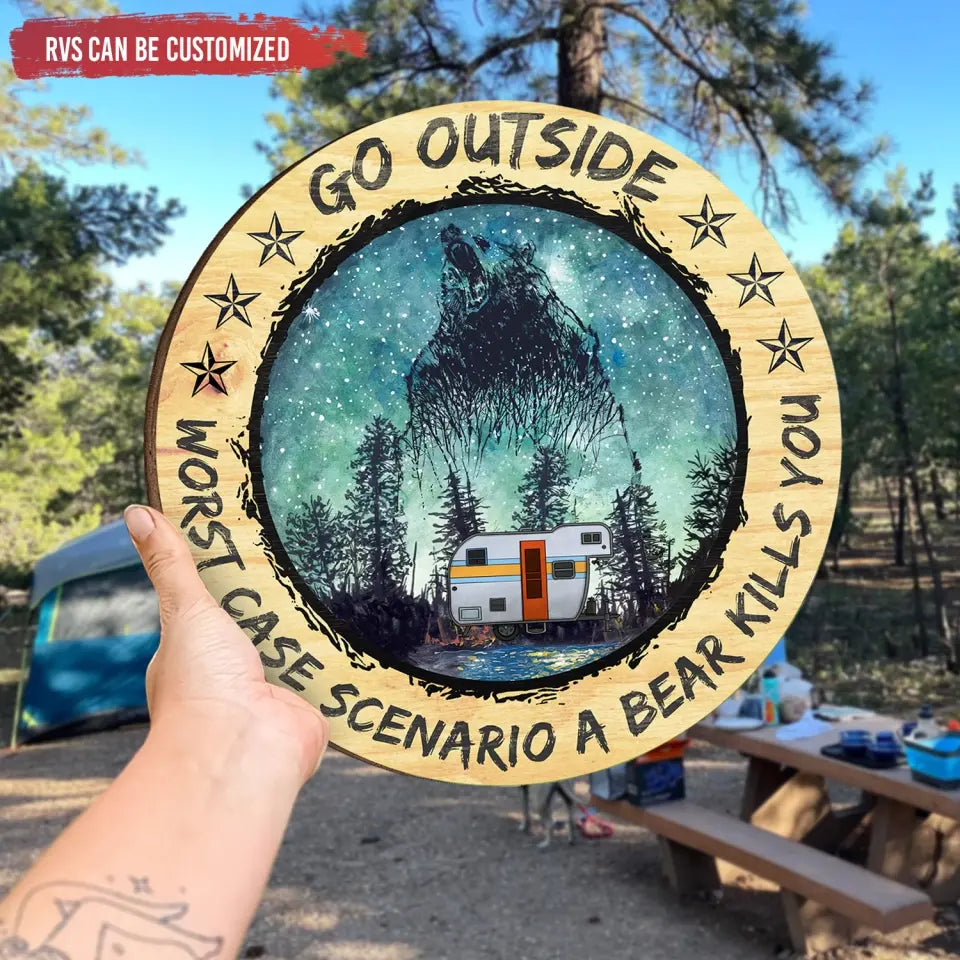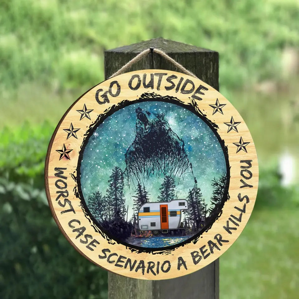 Go Outside Worst Case Scenario A Bear Kills You - Personalized Wood Sign, Gift For Camping Lovers - CF-DS803