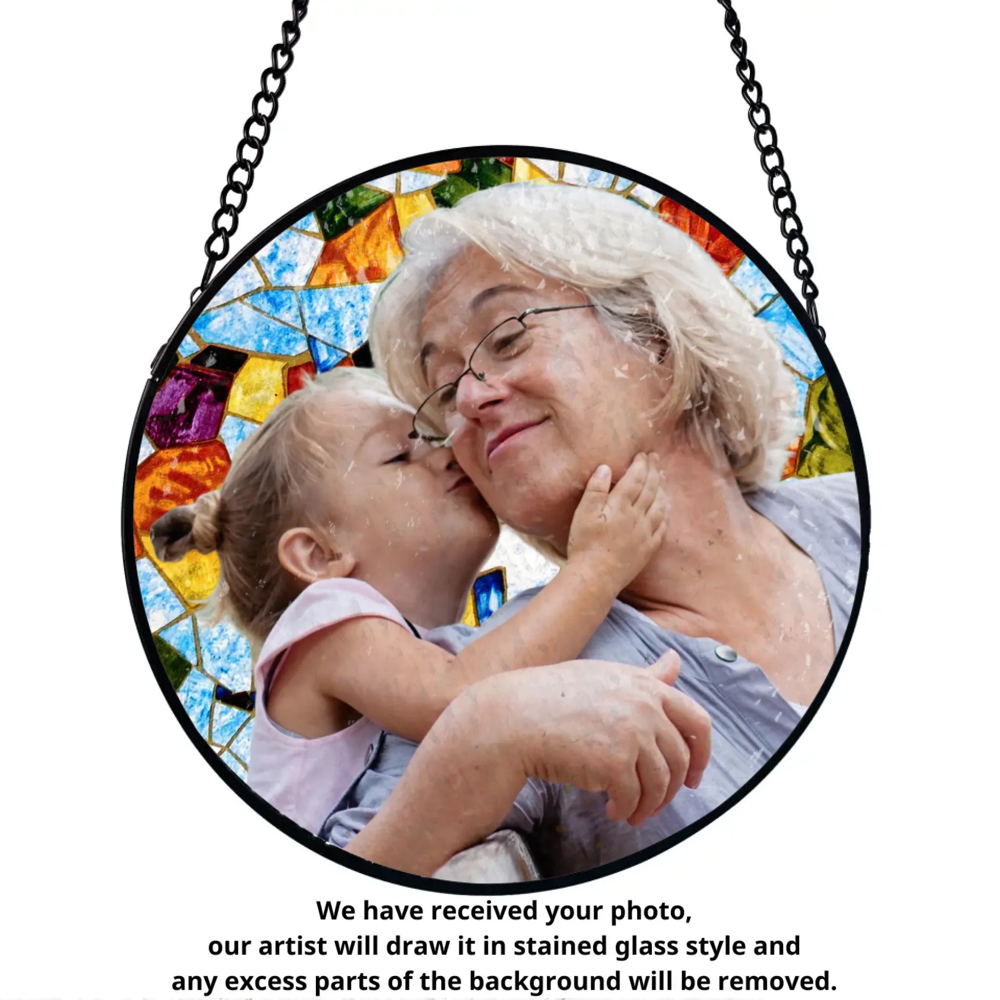 Grandma And Grandkids Portrait - Personalized Window Stained Glass, Suncatcher Hangings, Gift For Grandma - WSG597AN