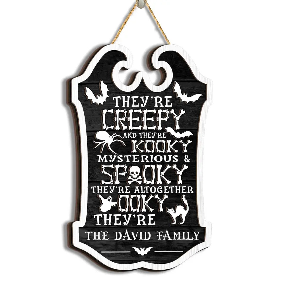 Halloween Sign - They're Creepy They're Kooky Mysterious And Spooky They're Altogether Ooky, Personalized 2 Layer Sign