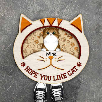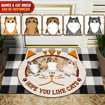 Hope You Like Cats - Personalized Cat Face Shaped Doormat, For Cat Lovers