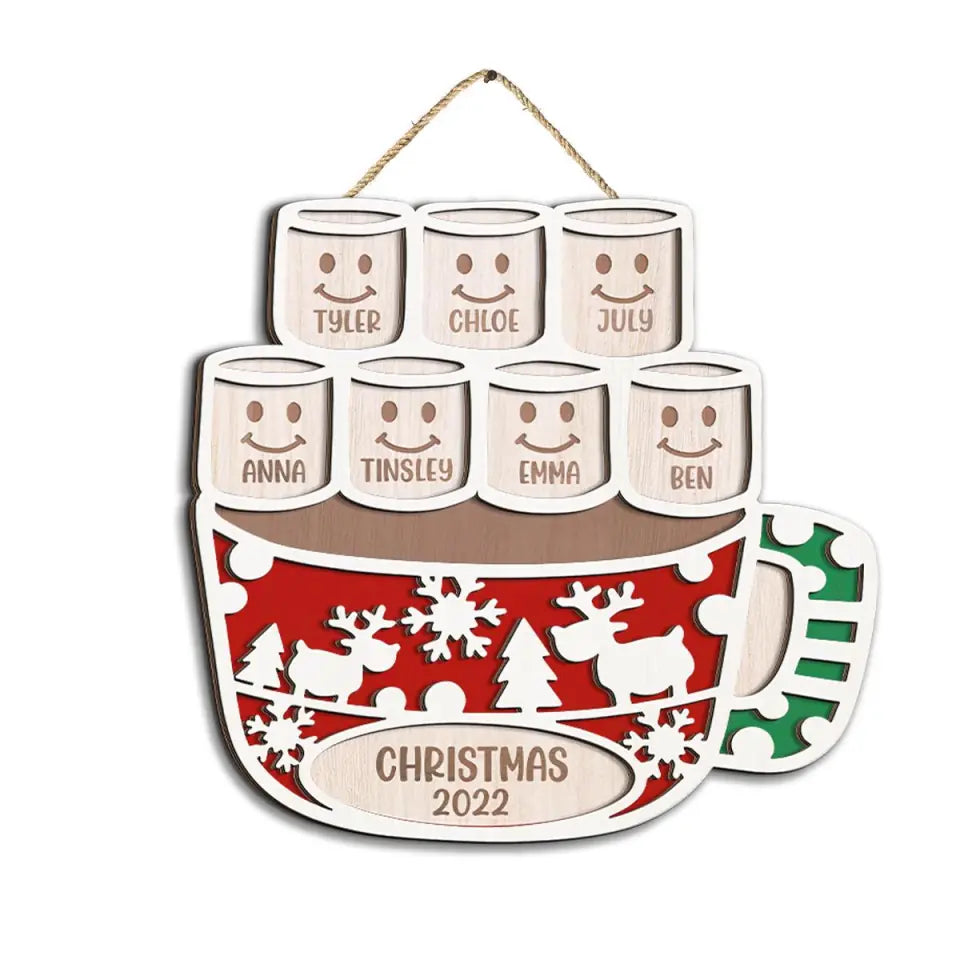 Hot Cocoa Marshmallow - Personalized 2 Layer Sign, Gift For Family