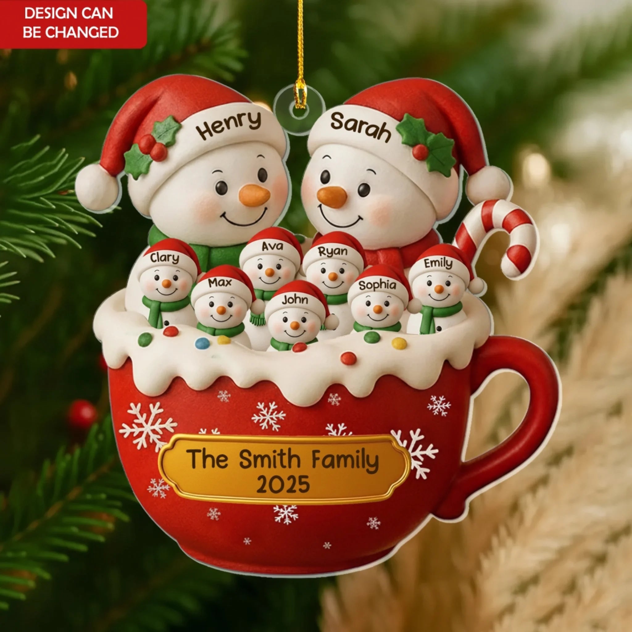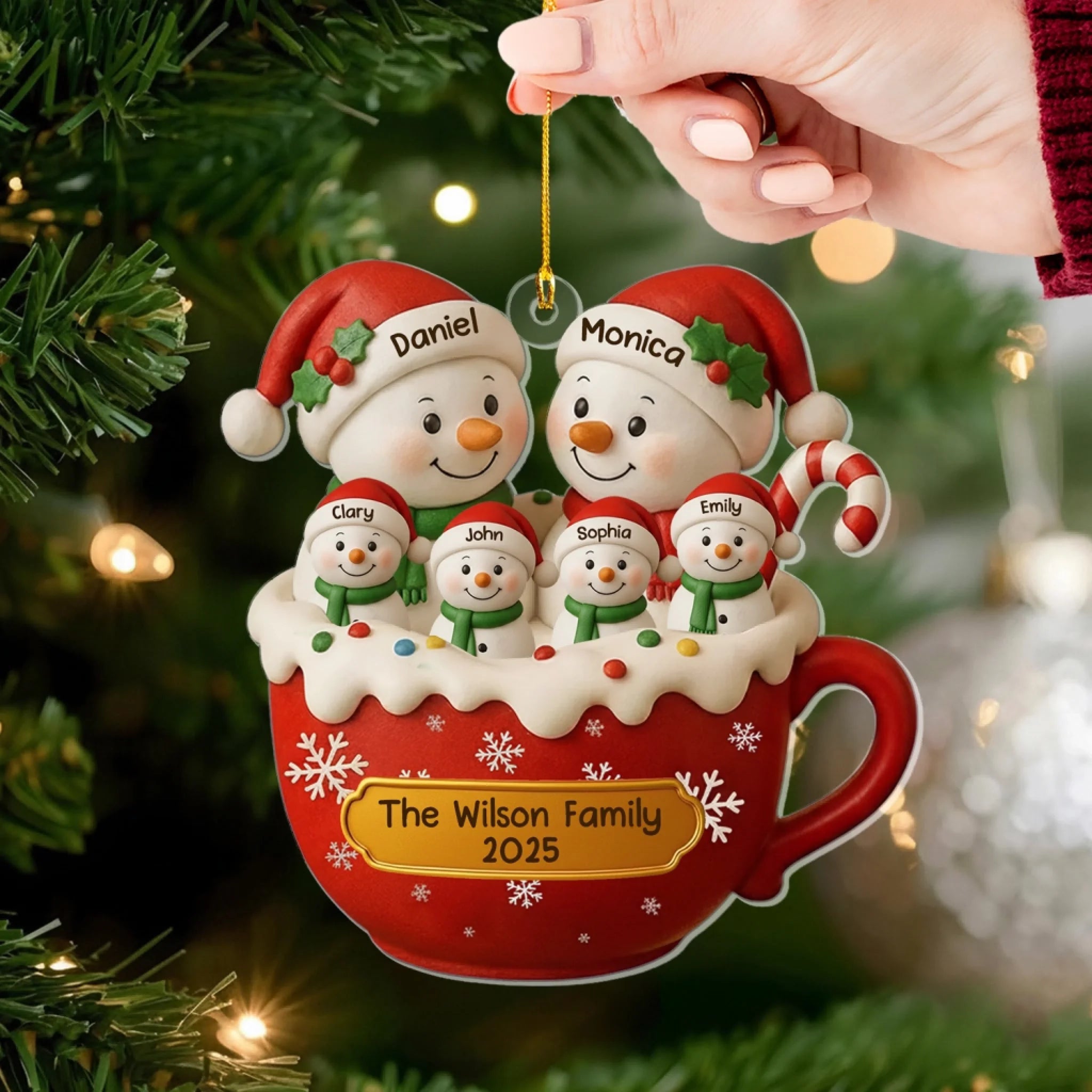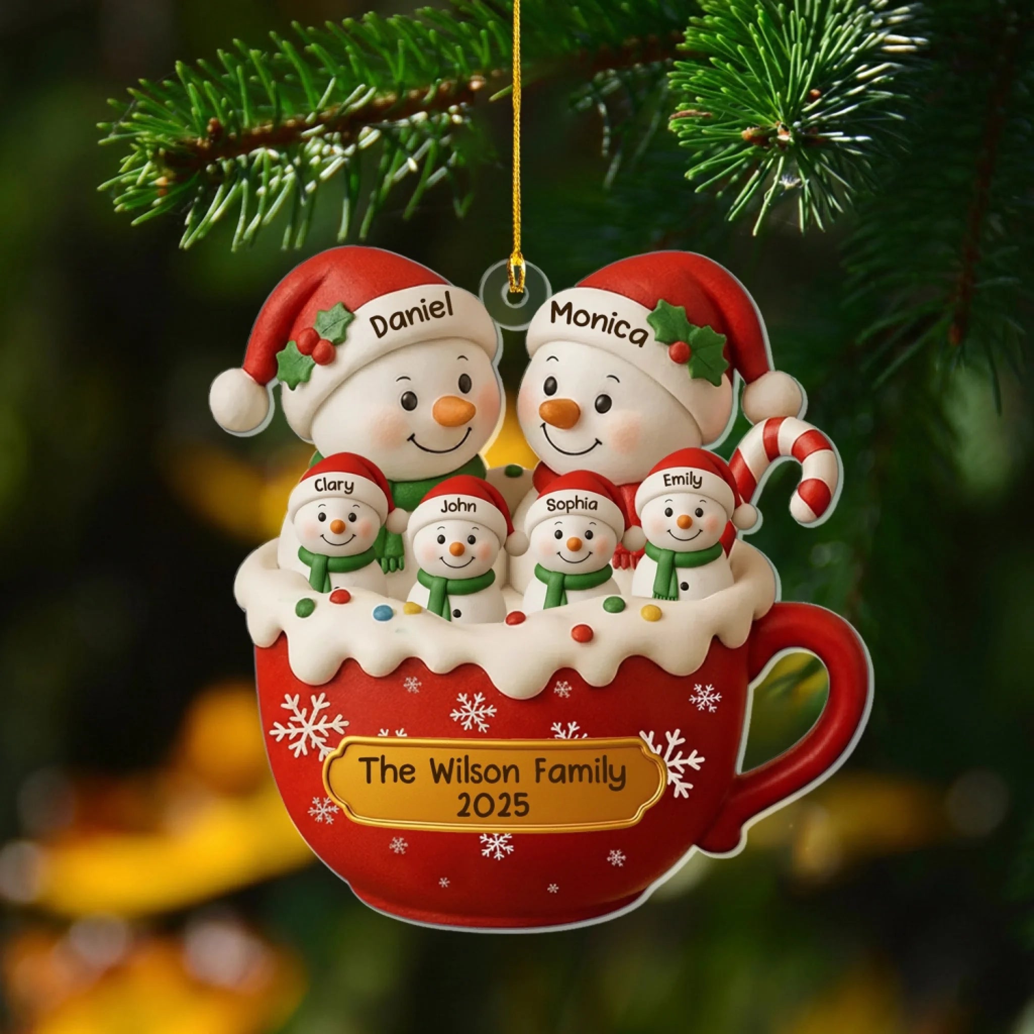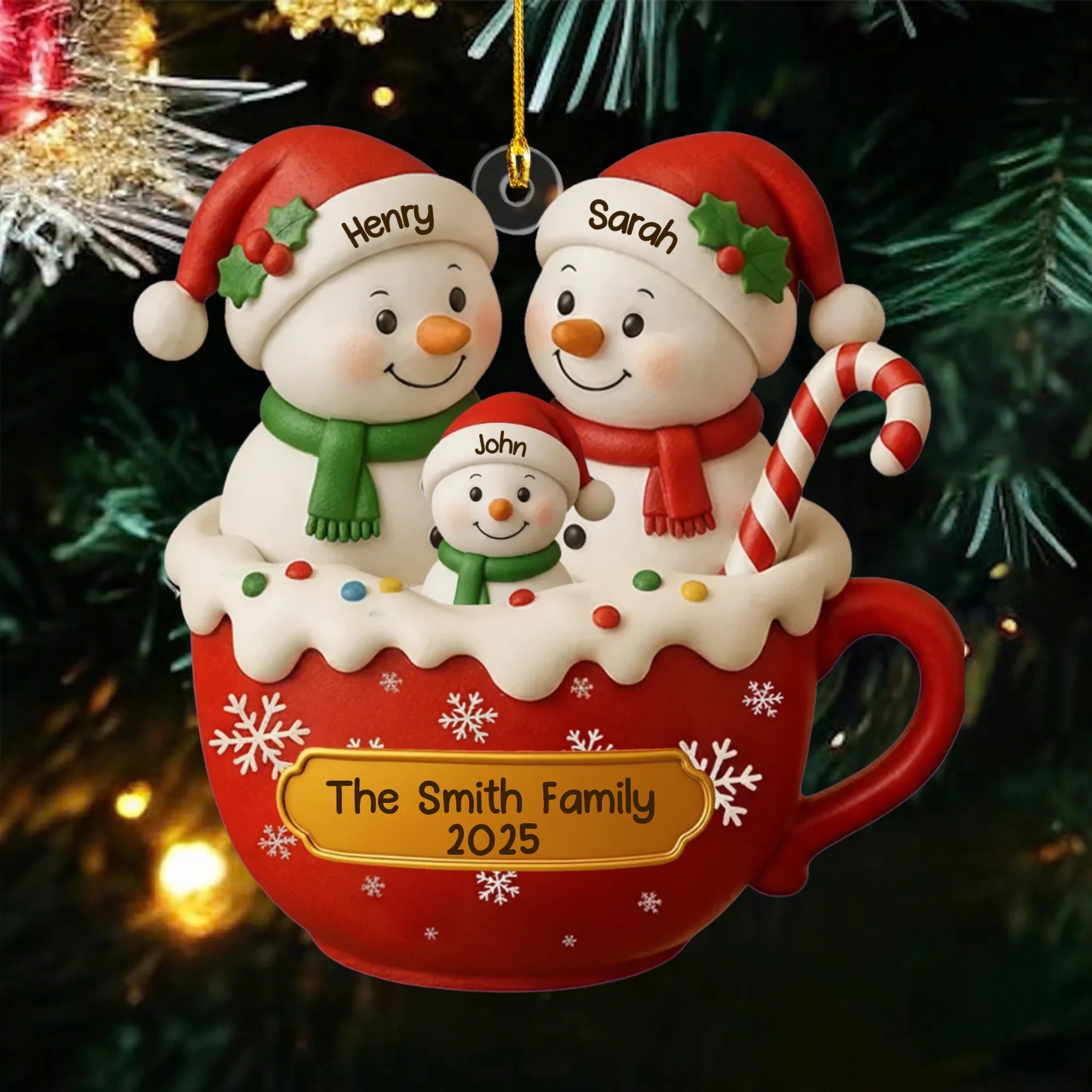 Hot Cocoa Snowman Family - Personalized Acrylic Ornament, Gift For Family, Snowman Family