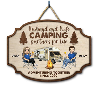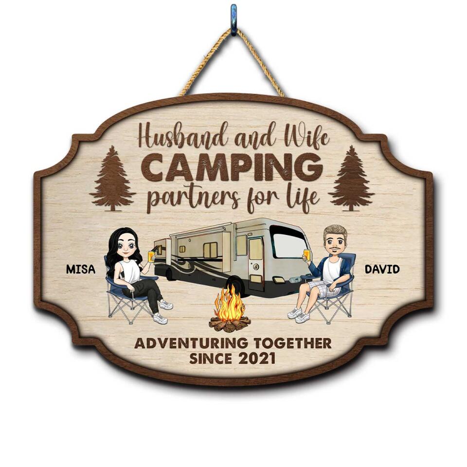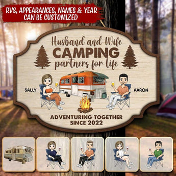 Husband And Wife Camping Partners For Life - Personalized Wooden Sign