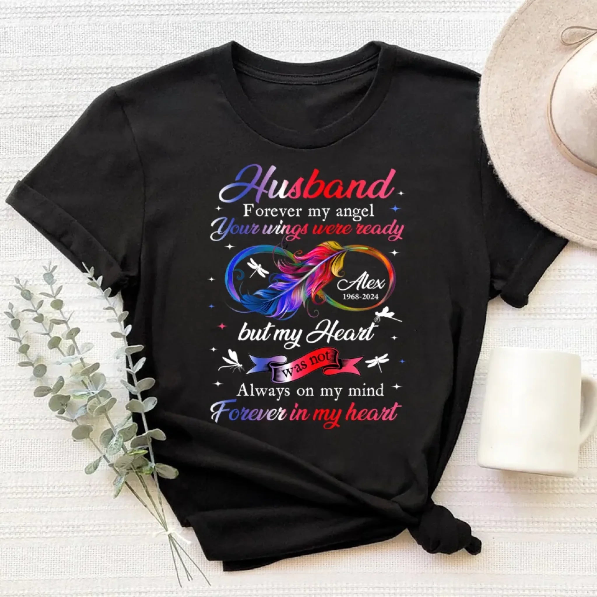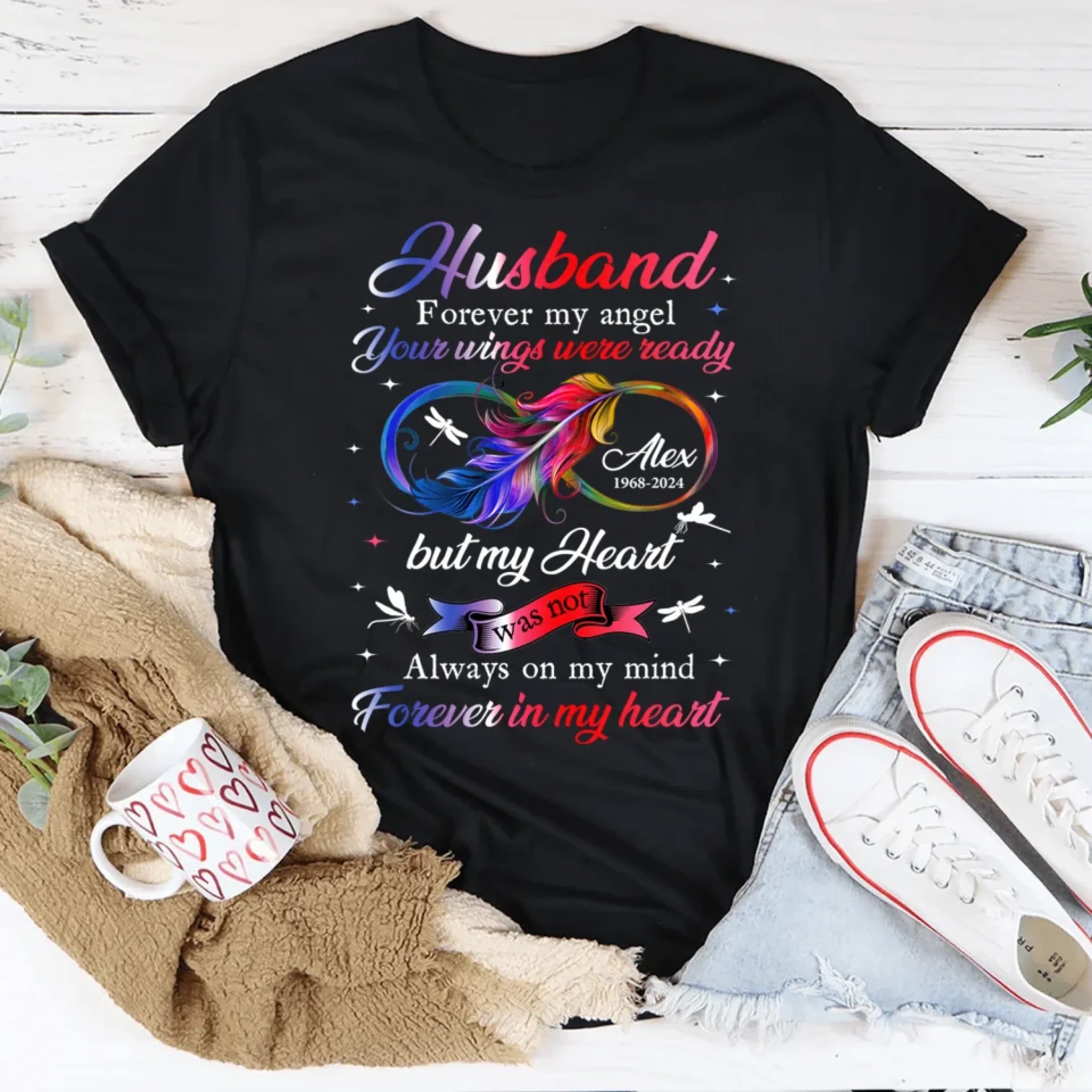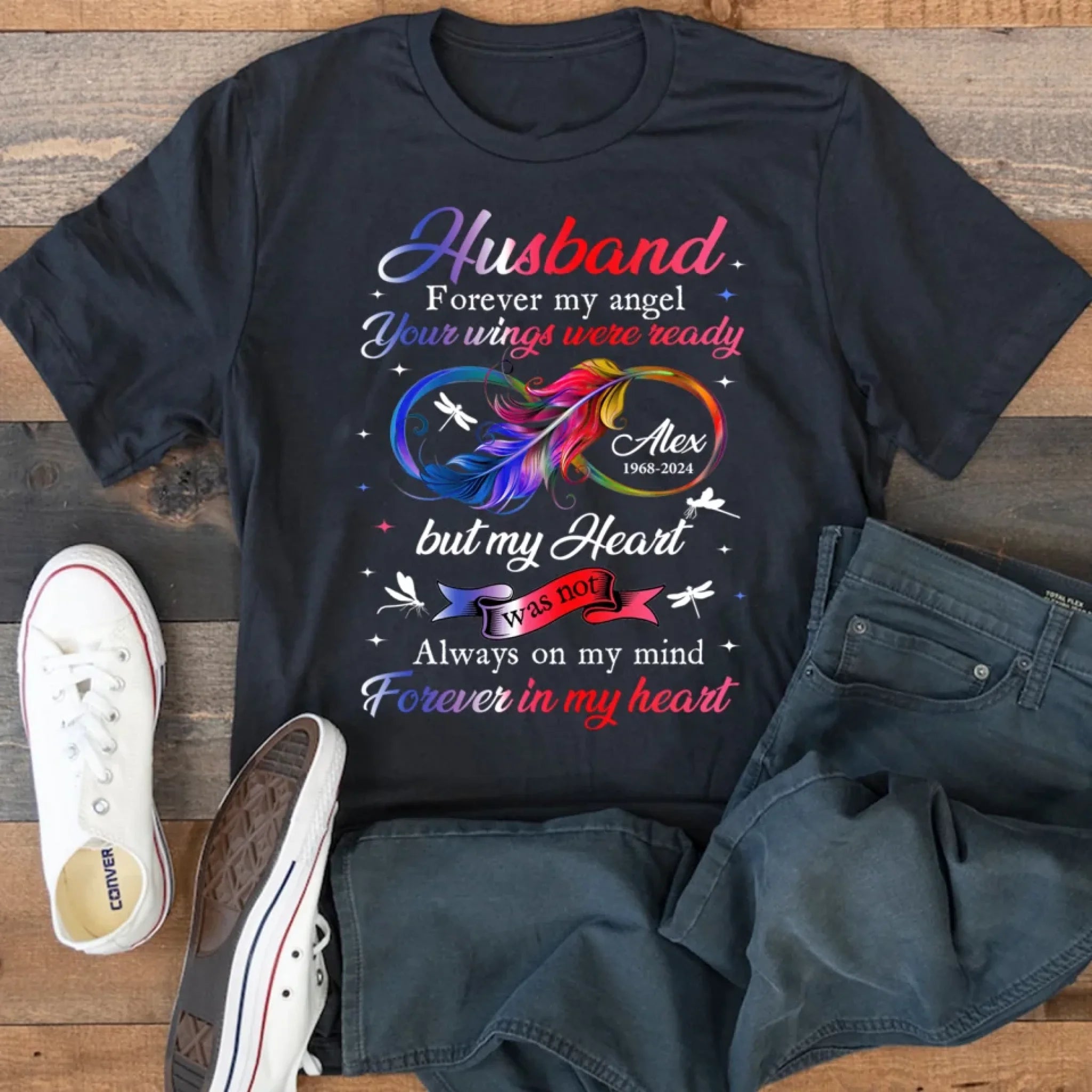 Husband Forever My Angel Your Wings Were Ready But My Heart Was Not - Personalized T-Shirt, Memorial Gift