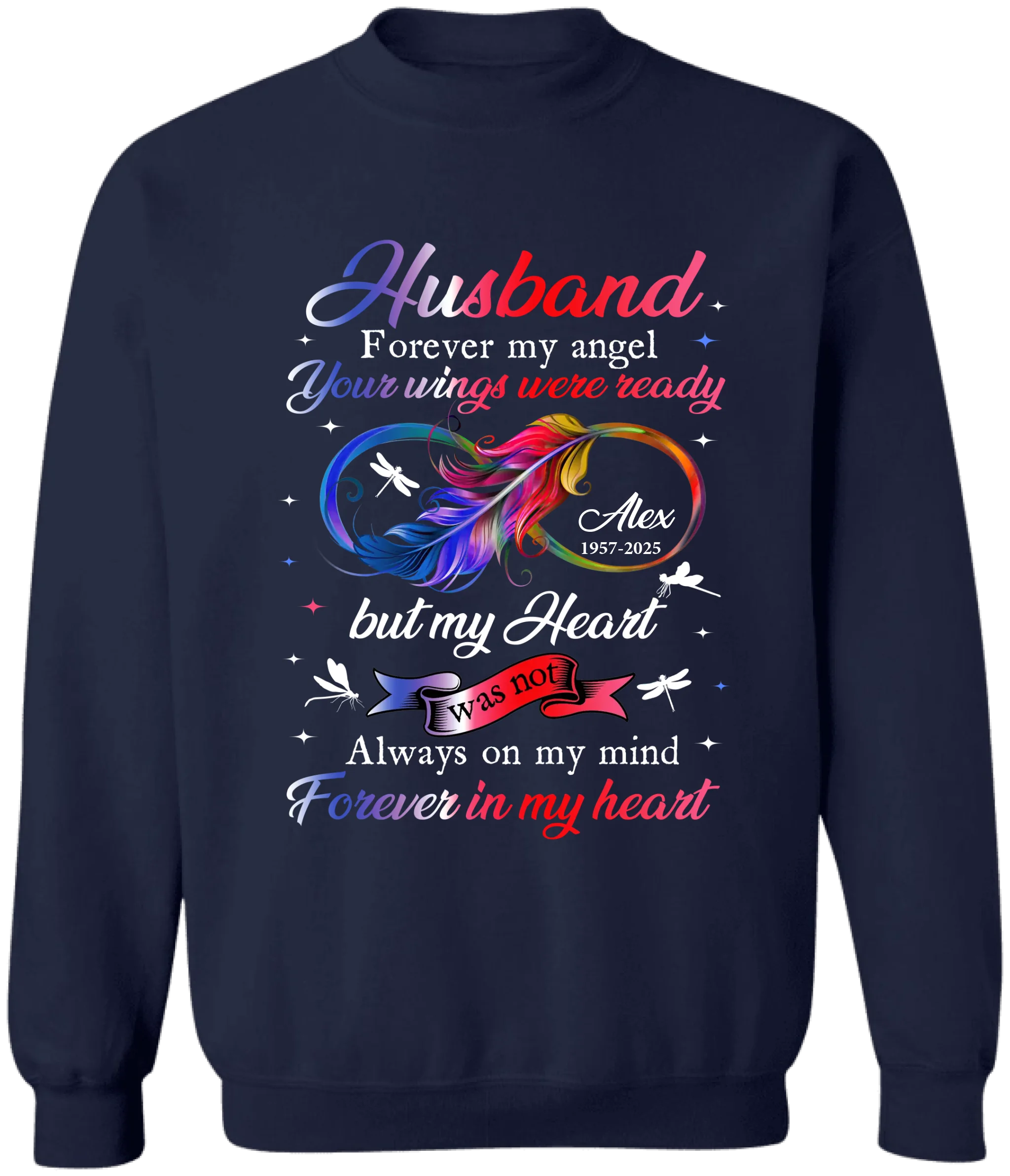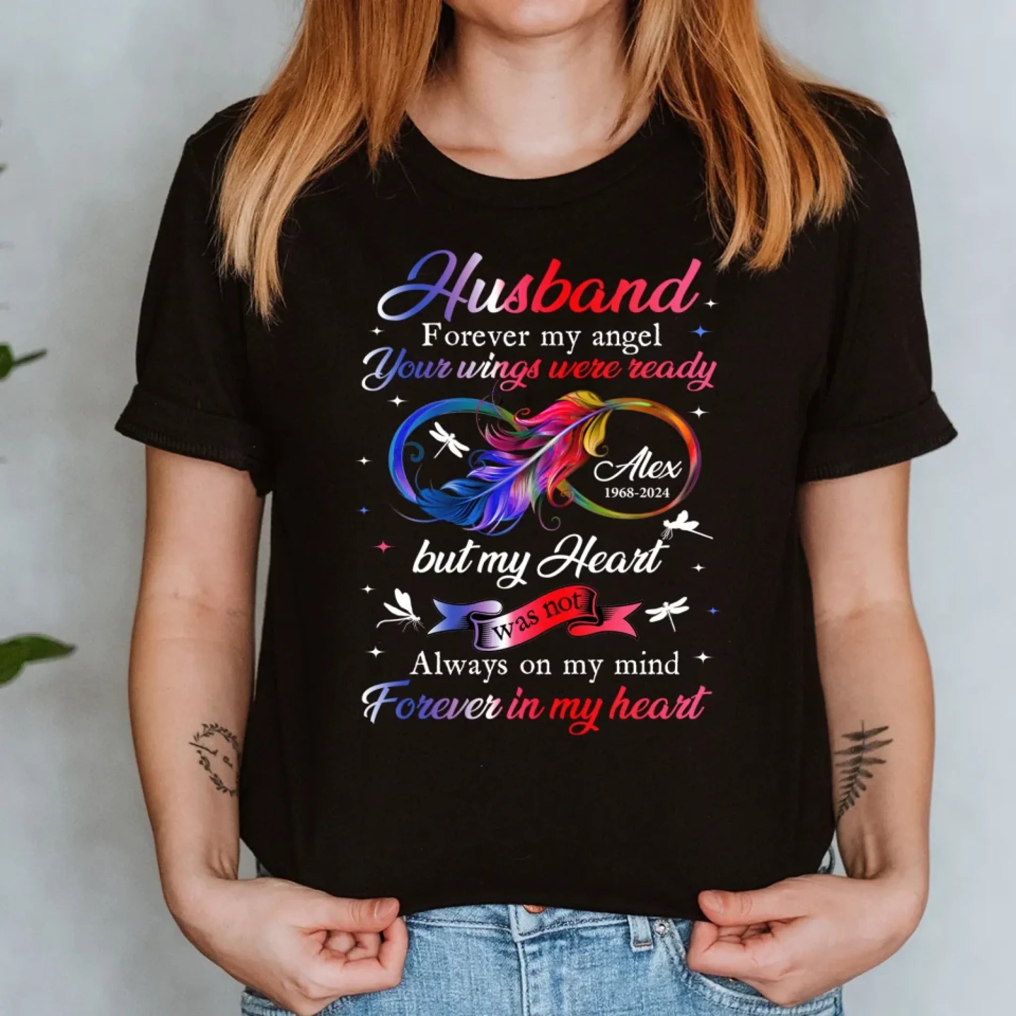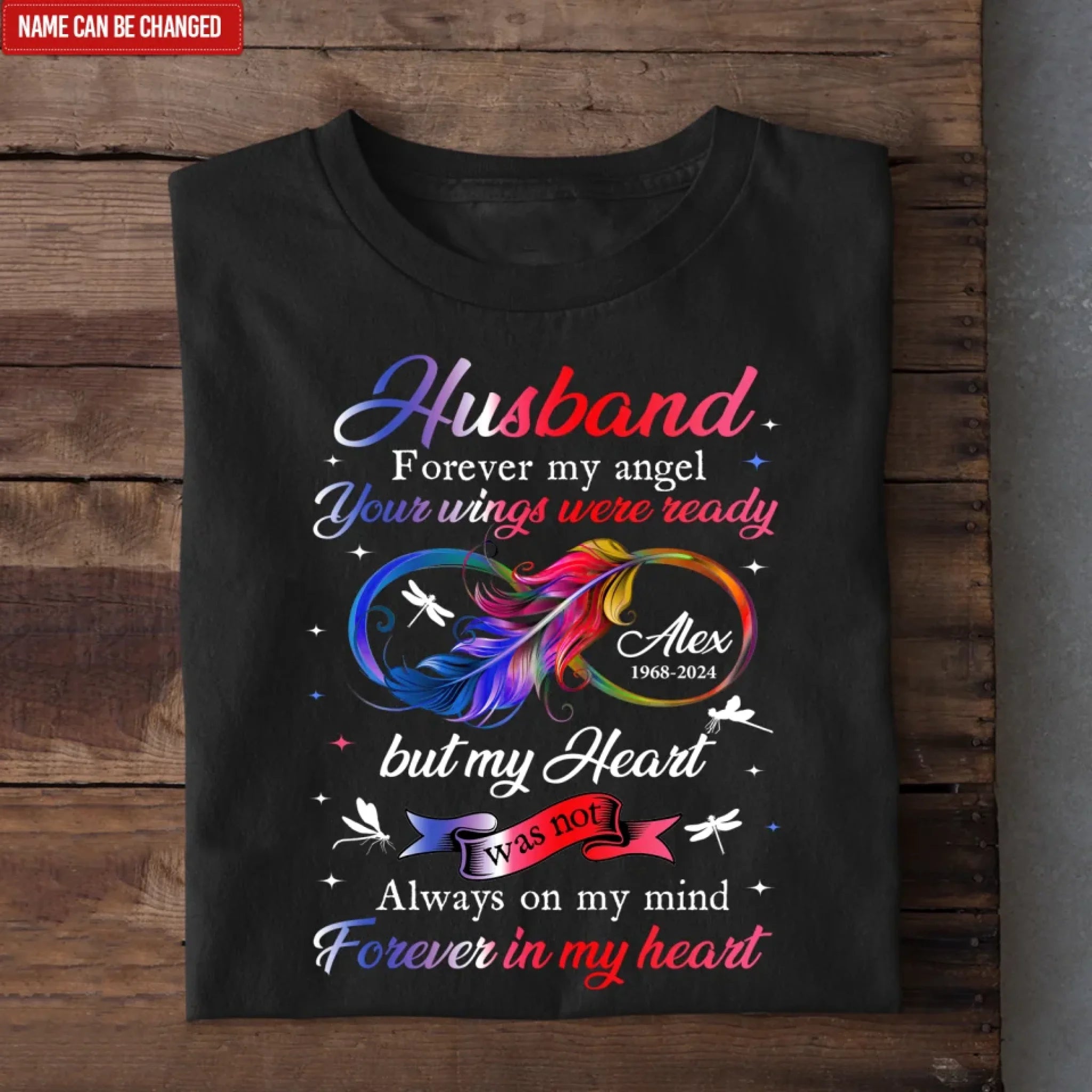 Husband Forever My Angel Your Wings Were Ready But My Heart Was Not - Personalized T-Shirt, Memorial Gift