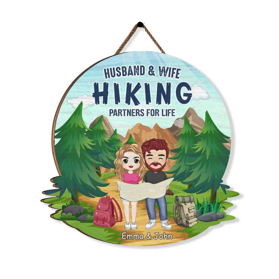 Husband & Wife Hiking Partners For Life - Personalized Door Sign, Gift For Camping Lover