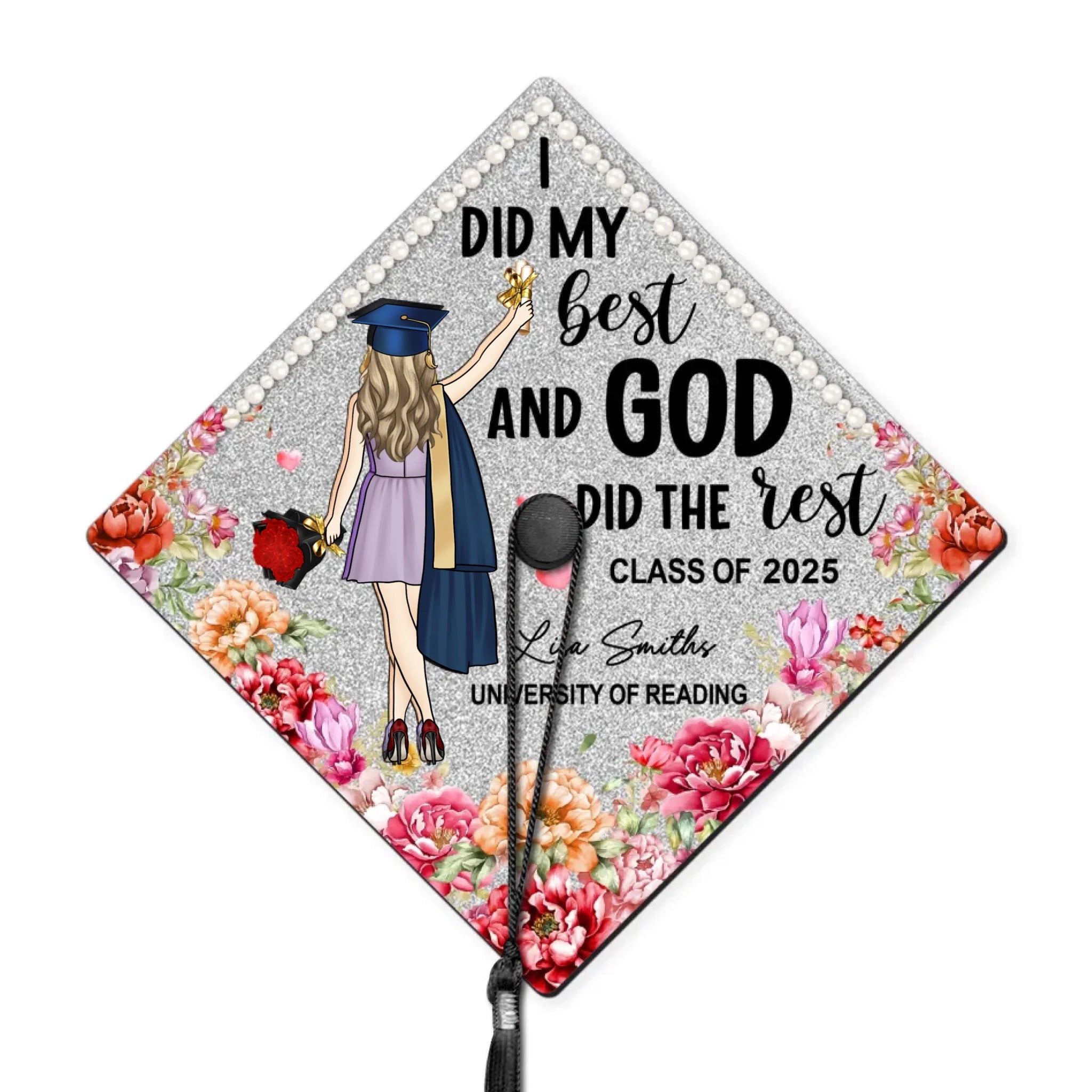 I Did My Best God Did The Rest - Personalized Graduation Cap Topper, Graduation Gift, 2025 Senior Grad Gift