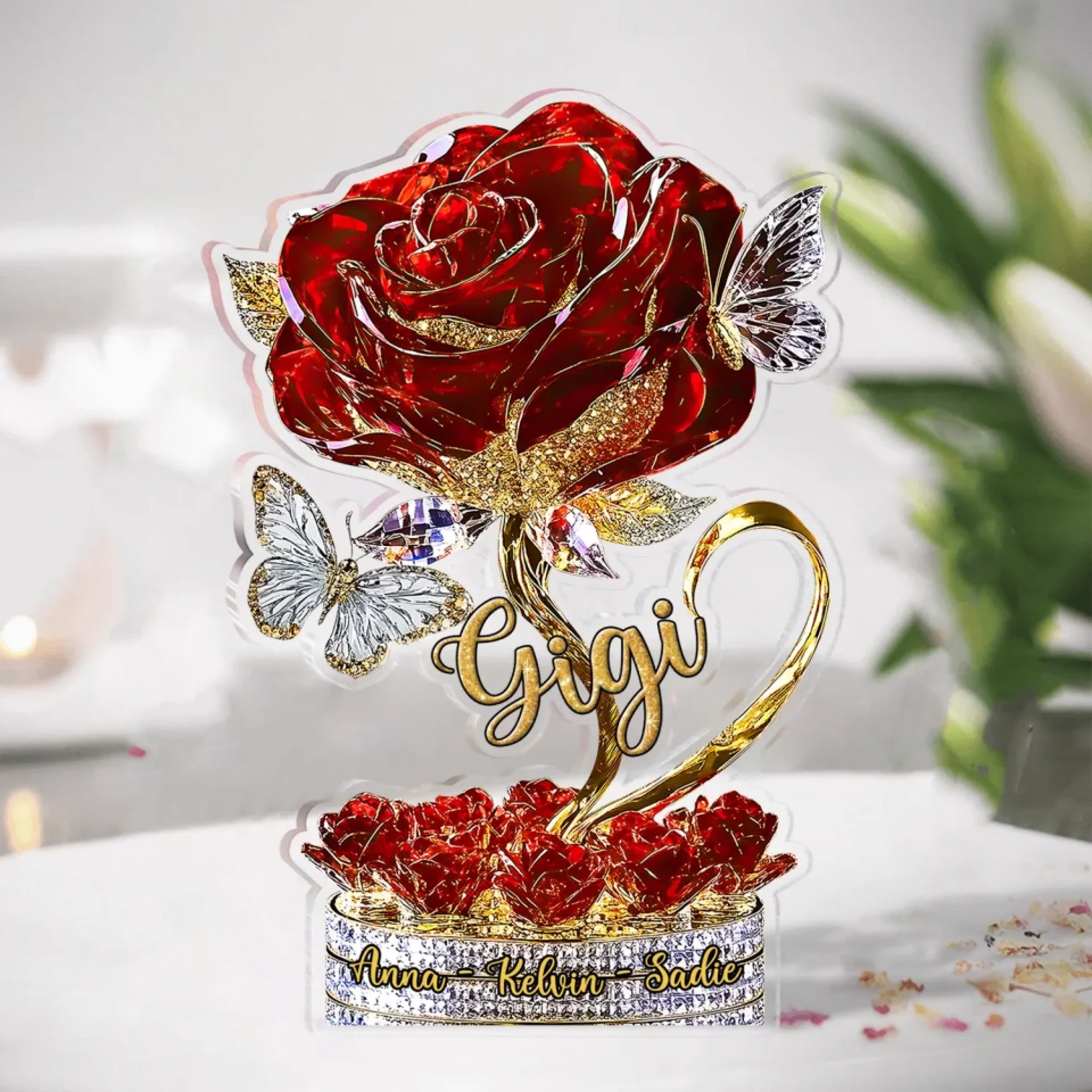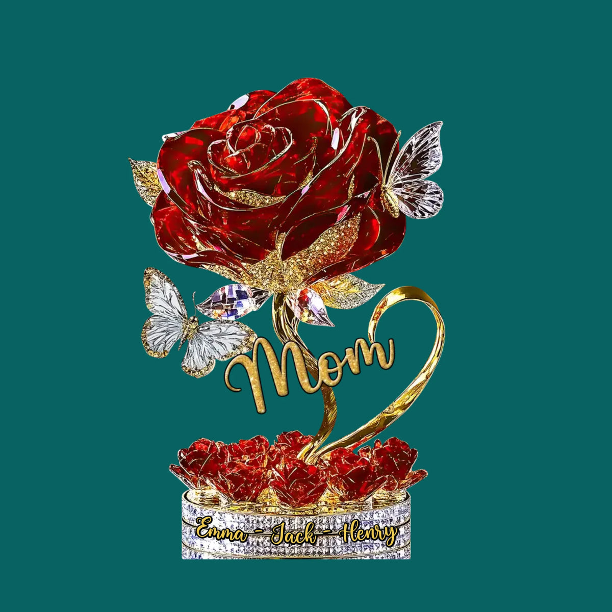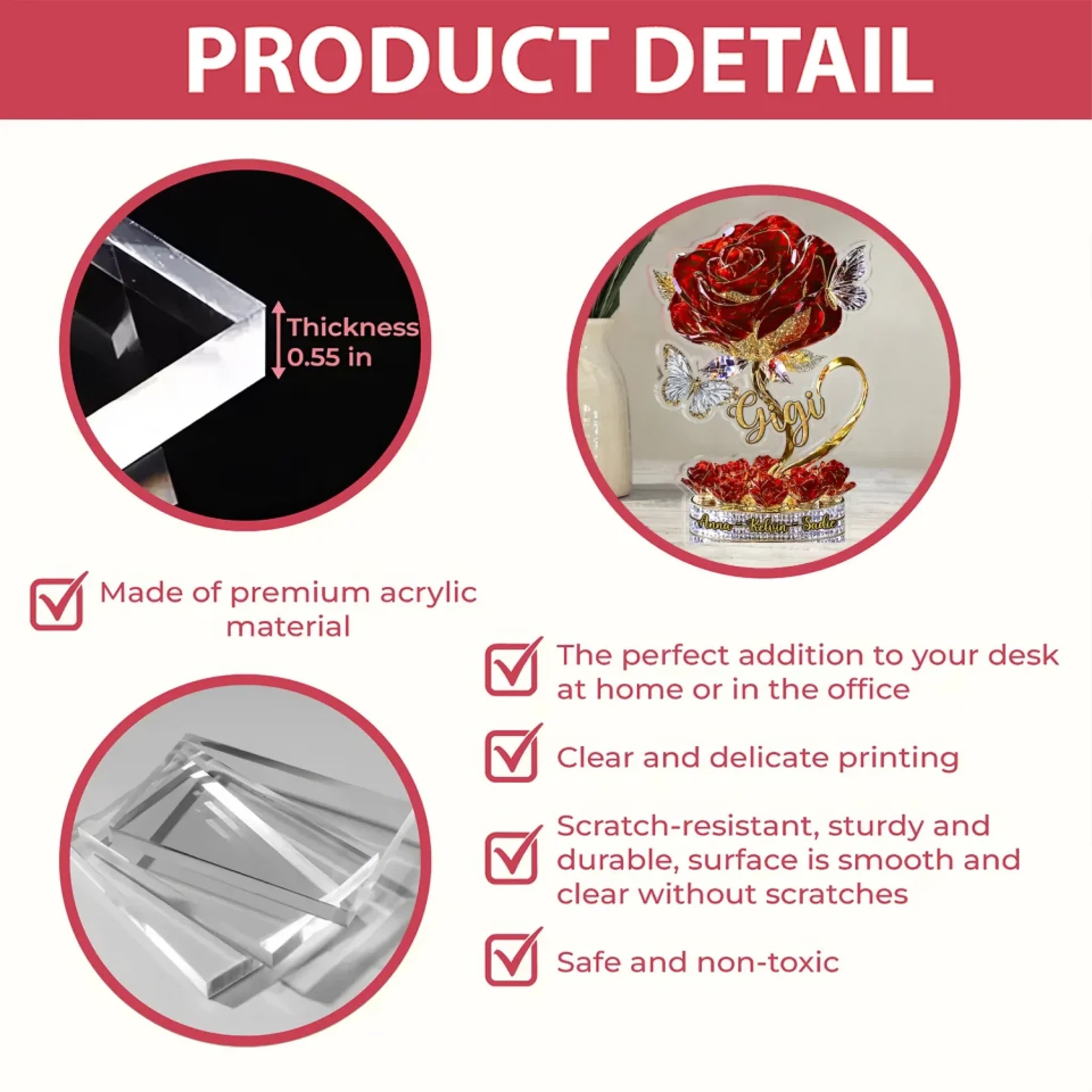 I Love You Mom Red Rose - Personalized Acrylic Plaque, Gift For Mom, Red Rose Plaque, Loving Gift