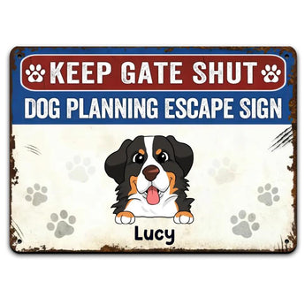 Keep Gate Shut, Dog Planning Escape - Personalized Metal Sign