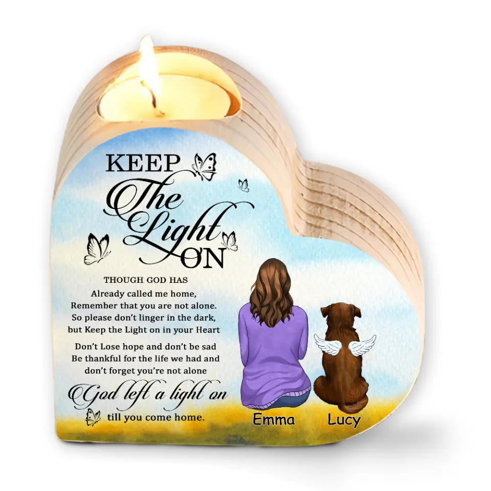 Keep The Light On Though God Has Already Called Me Home - Personalized Heart Shaped Candle Holder