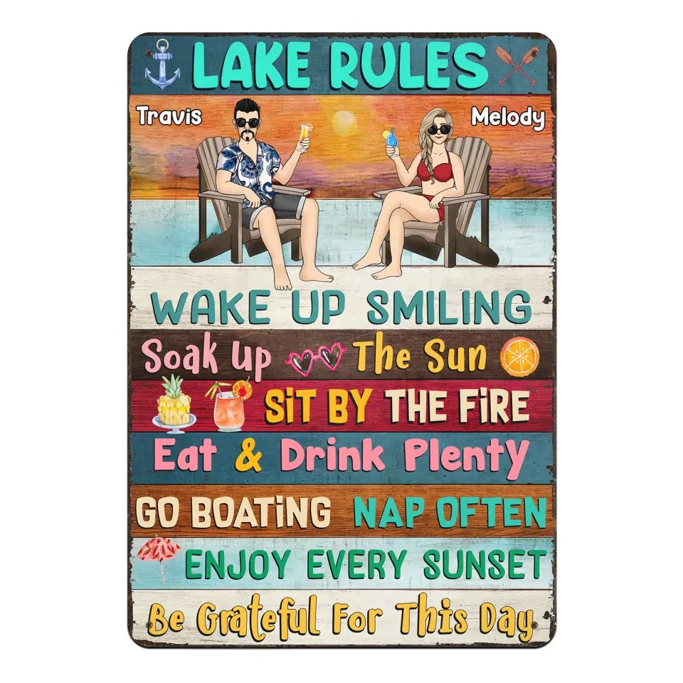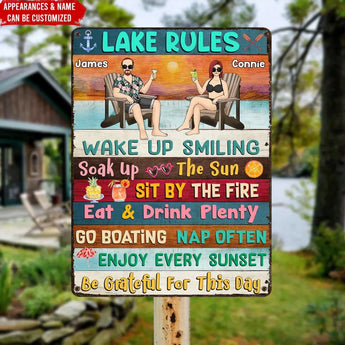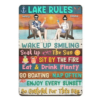 Lake Rules Wake up Smiling Soak Up The Sun - Personalized Metal Sign