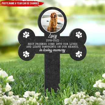 Leave Pawprints On Our Hearts - Personalized Plaque Stake, Pet Memorial Gift, Loss of Dog Sympathy Gift