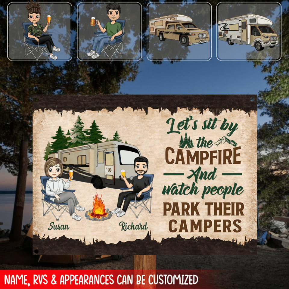 Let's Sit By The Campfire And Watch People Park Their Campers - Personalized Metal Sign
