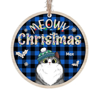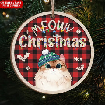 Meowy Christmas - Personalized Wooden Ornament, Gift For Christmas