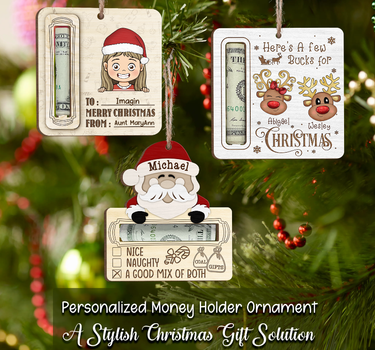 This ornament brings a thoughtful and meaningful twist to traditional gift-giving by presenting money in a unique way.