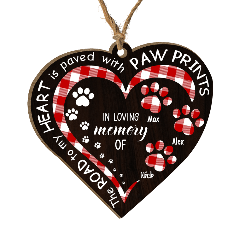 My Heart With Paw Prints - Personalized Wooden Ornament