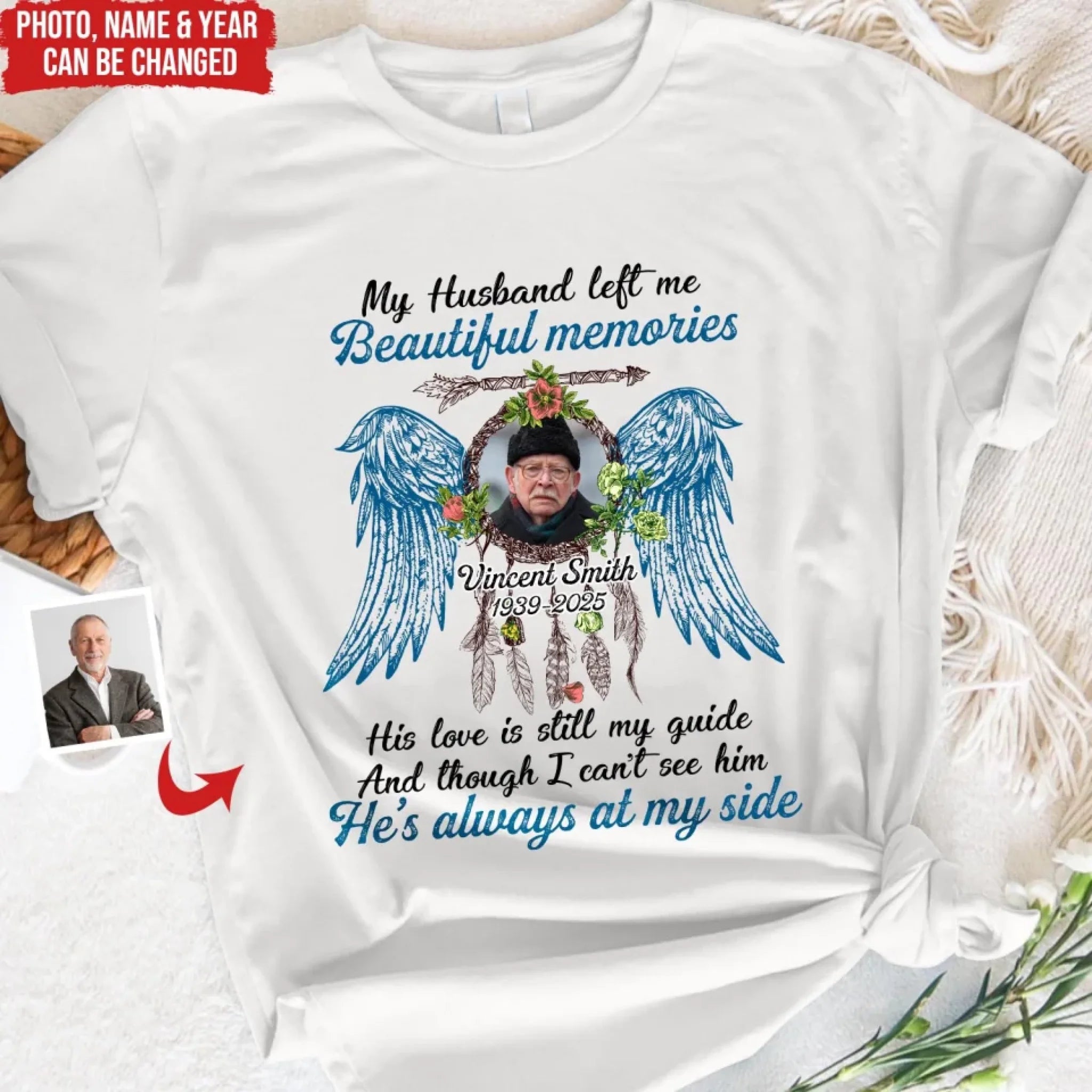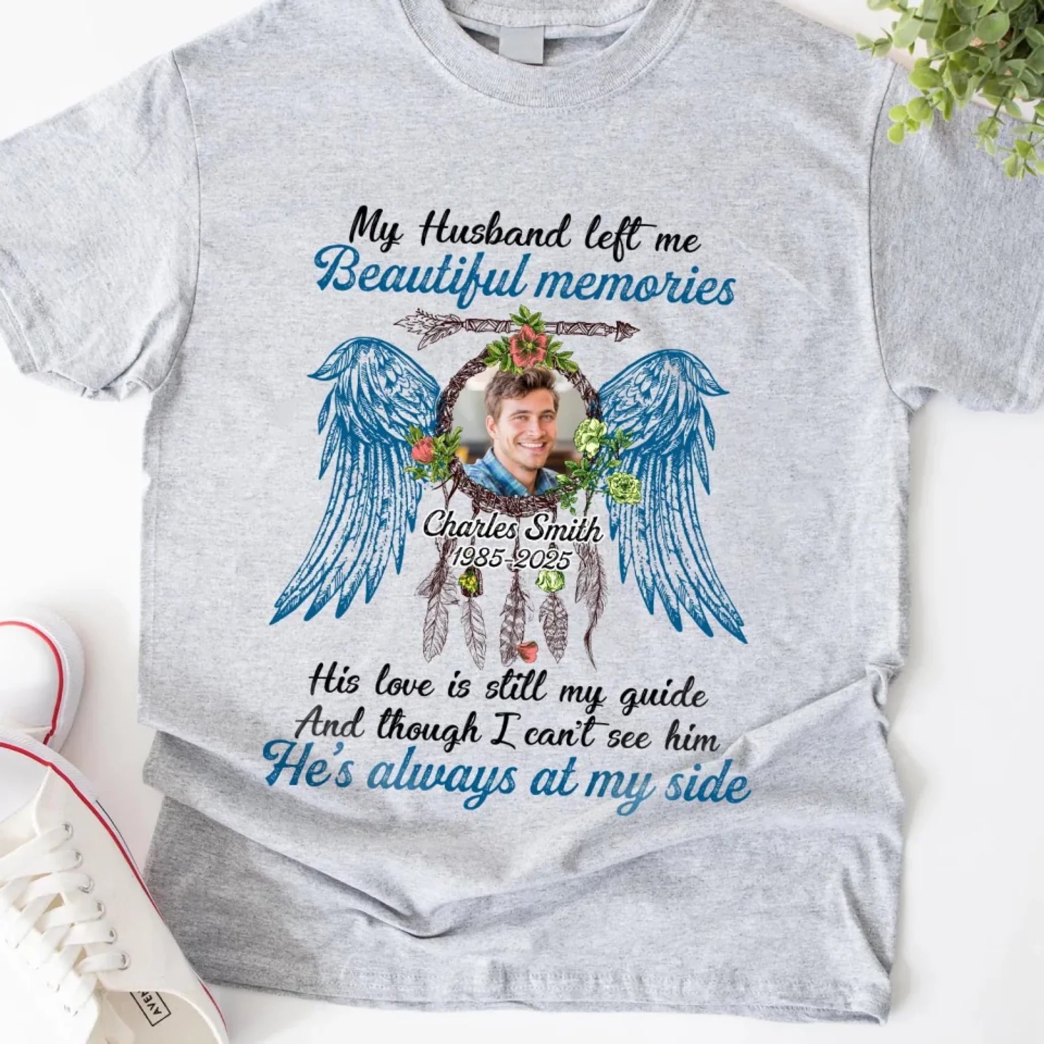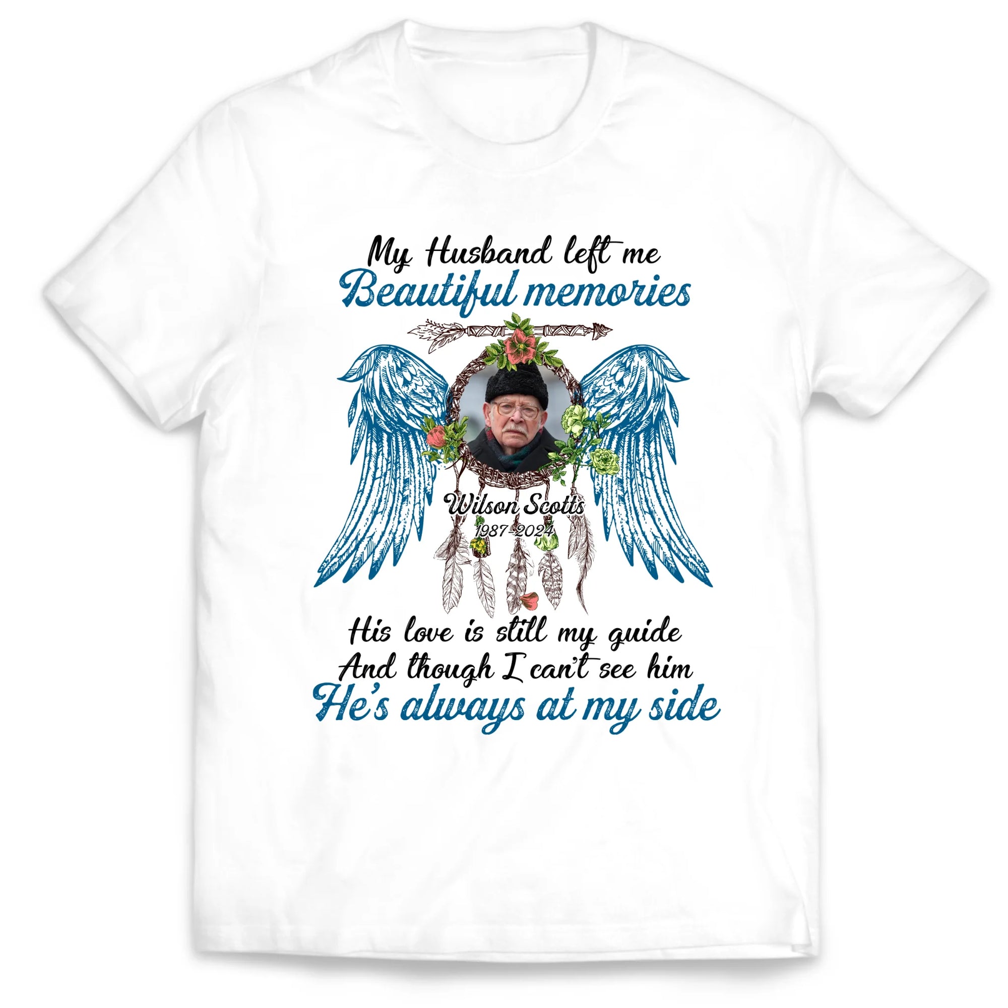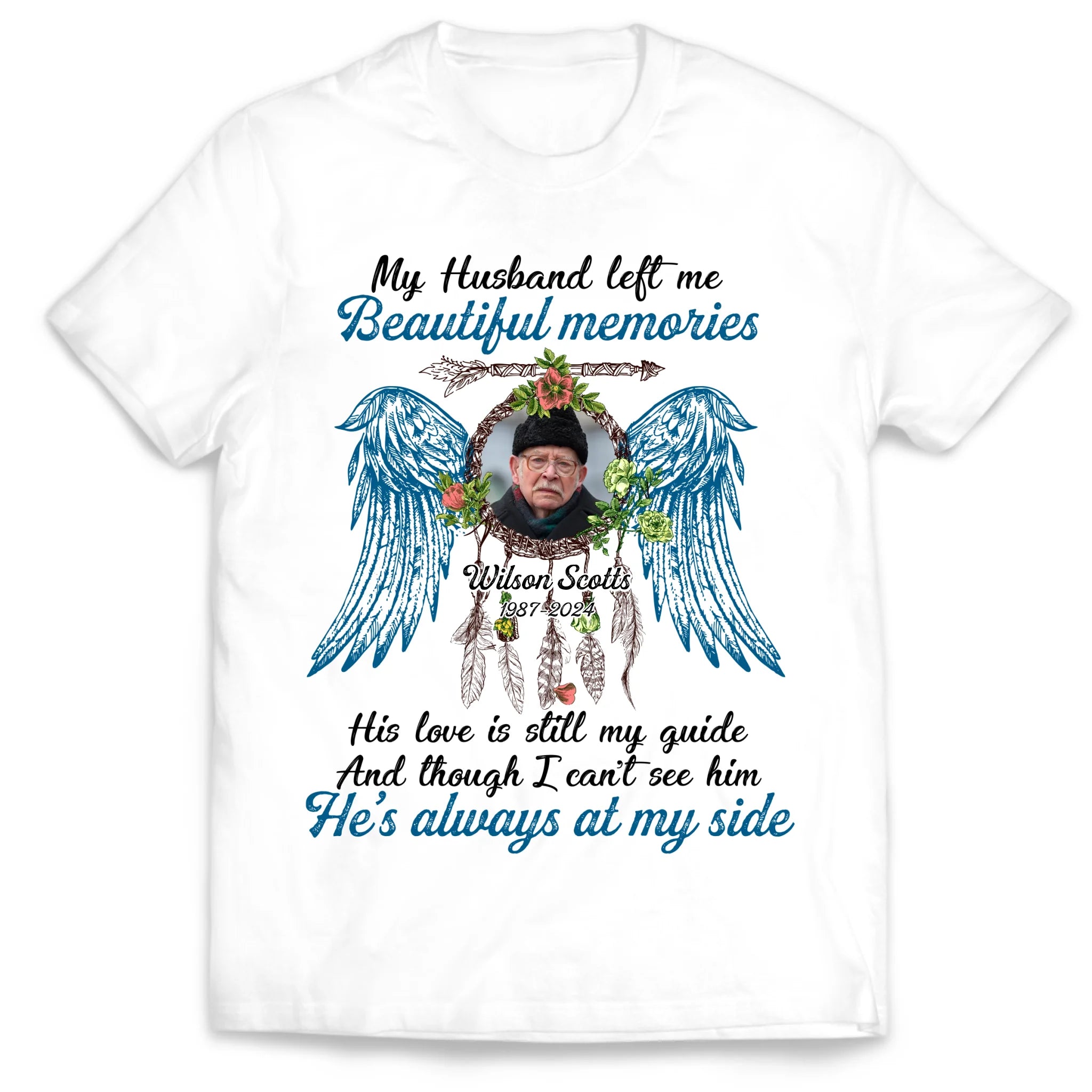 My Husband Left Me Beautiful Memories - Personalized T-Shirt, Memorial Gift For Loss Of Loved One