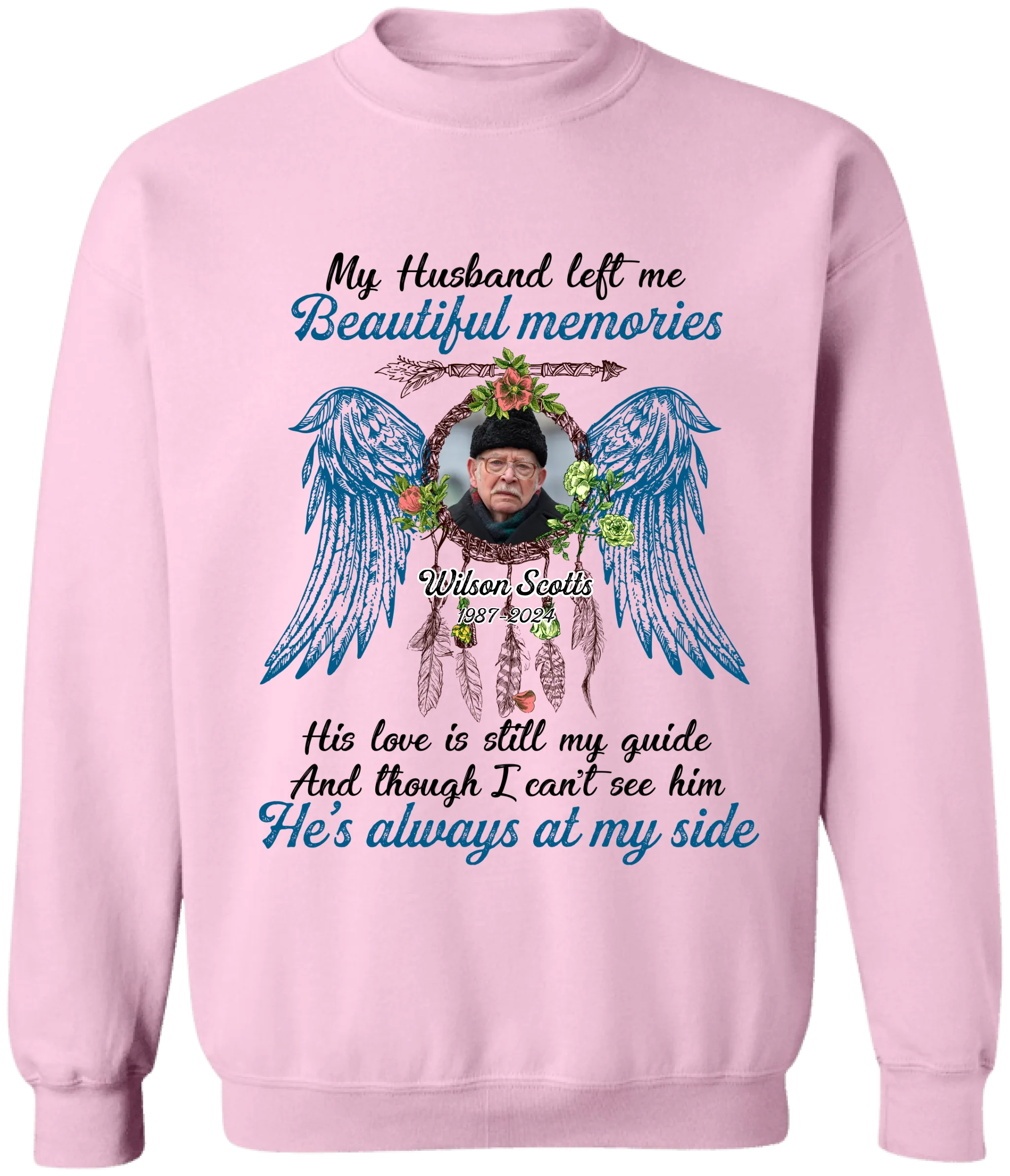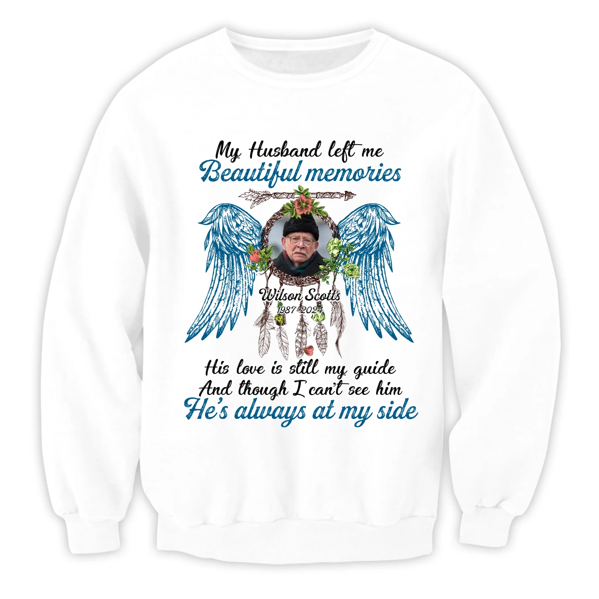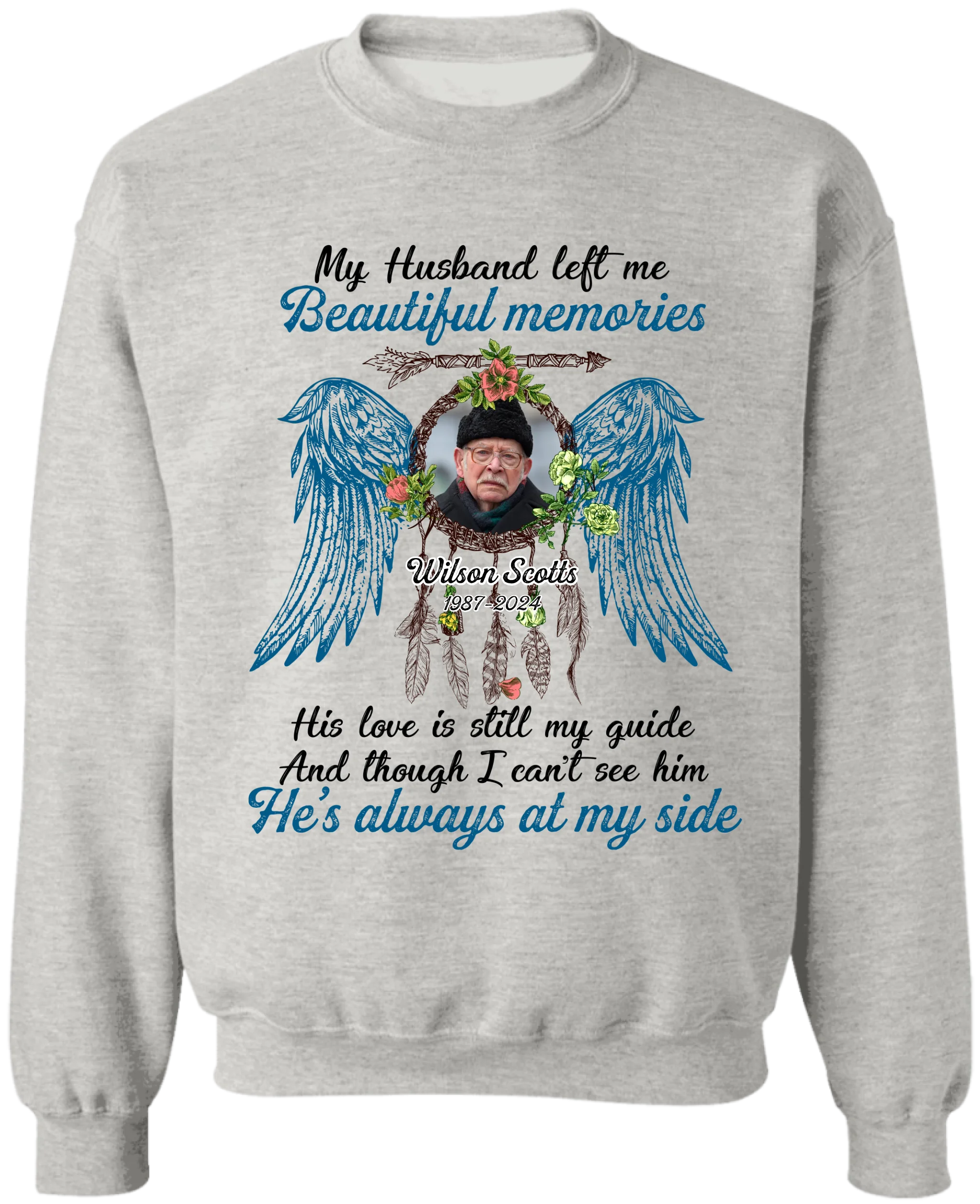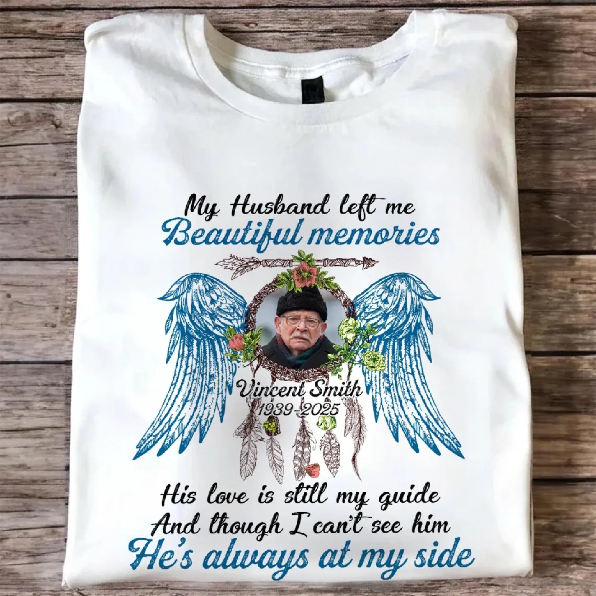 My Husband Left Me Beautiful Memories - Personalized T-Shirt, Memorial Gift For Loss Of Loved One