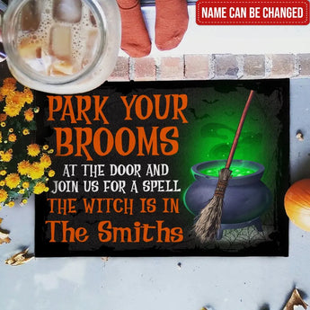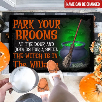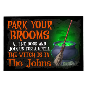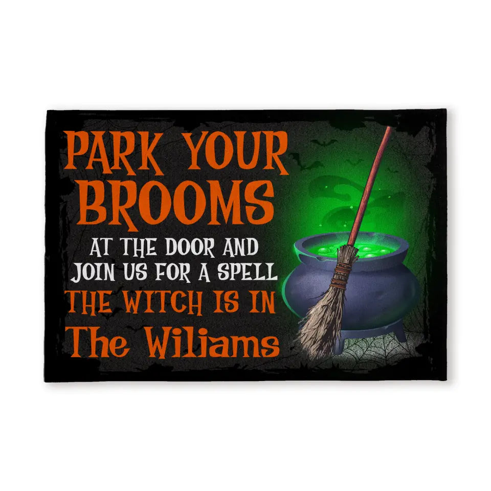 Park Your Brooms At The Door - Personalized Doormat, Halloween Gift