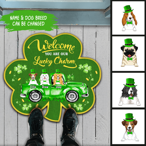 Welcome You Are Our Lucky Charm - Personalized Shamrock Shaped Doormat