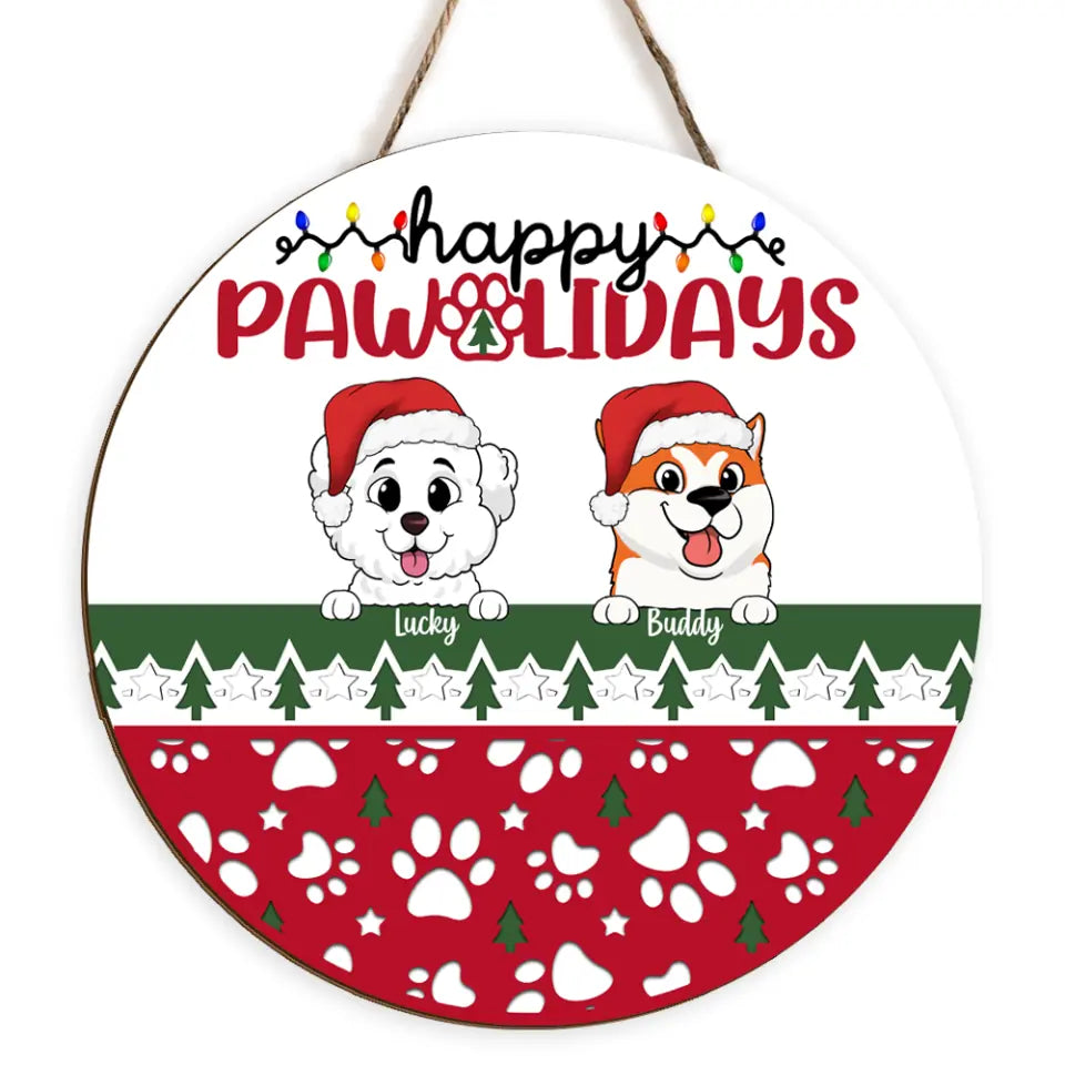 Personalized Dog Sign - Christmas Decoration - Christmas Gift - Dog Lovers Gift - Personalized Happy Pawlidays Sign